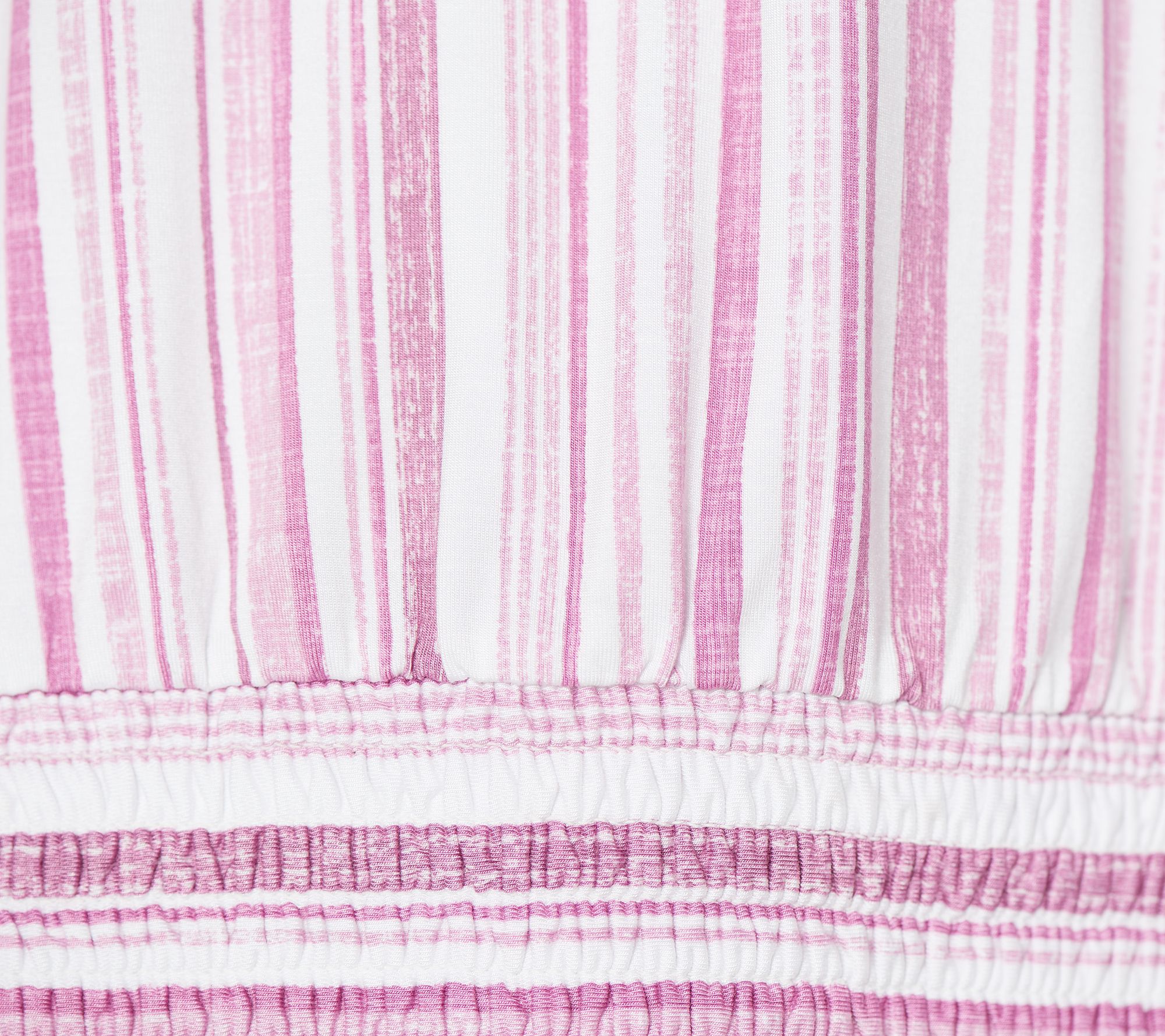• Features: allover print, dolman 3/4-length sleeves, smocked waistband