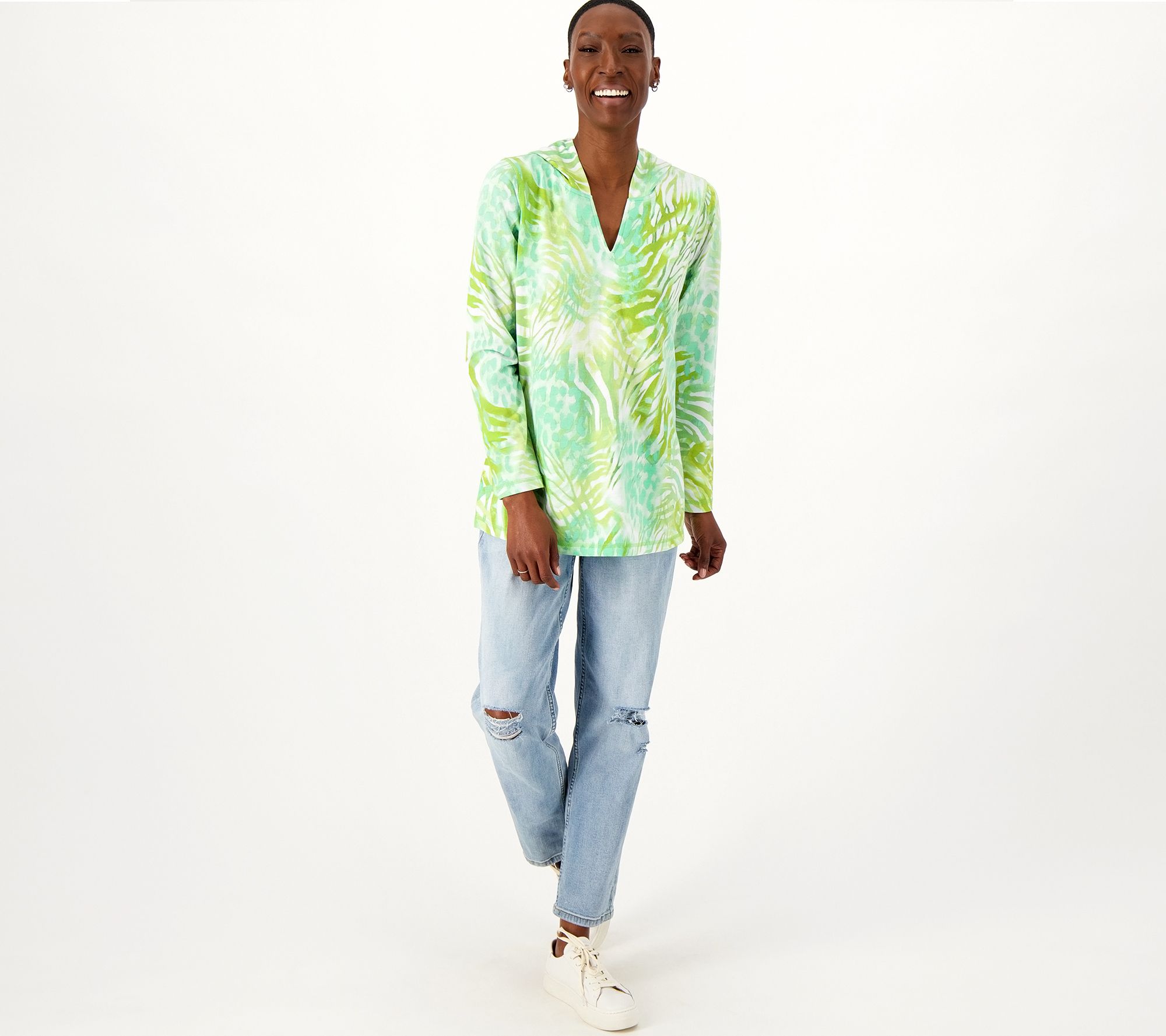 Susan Graver Weekend Printed Regular French Terry Long Sleeve Tunic