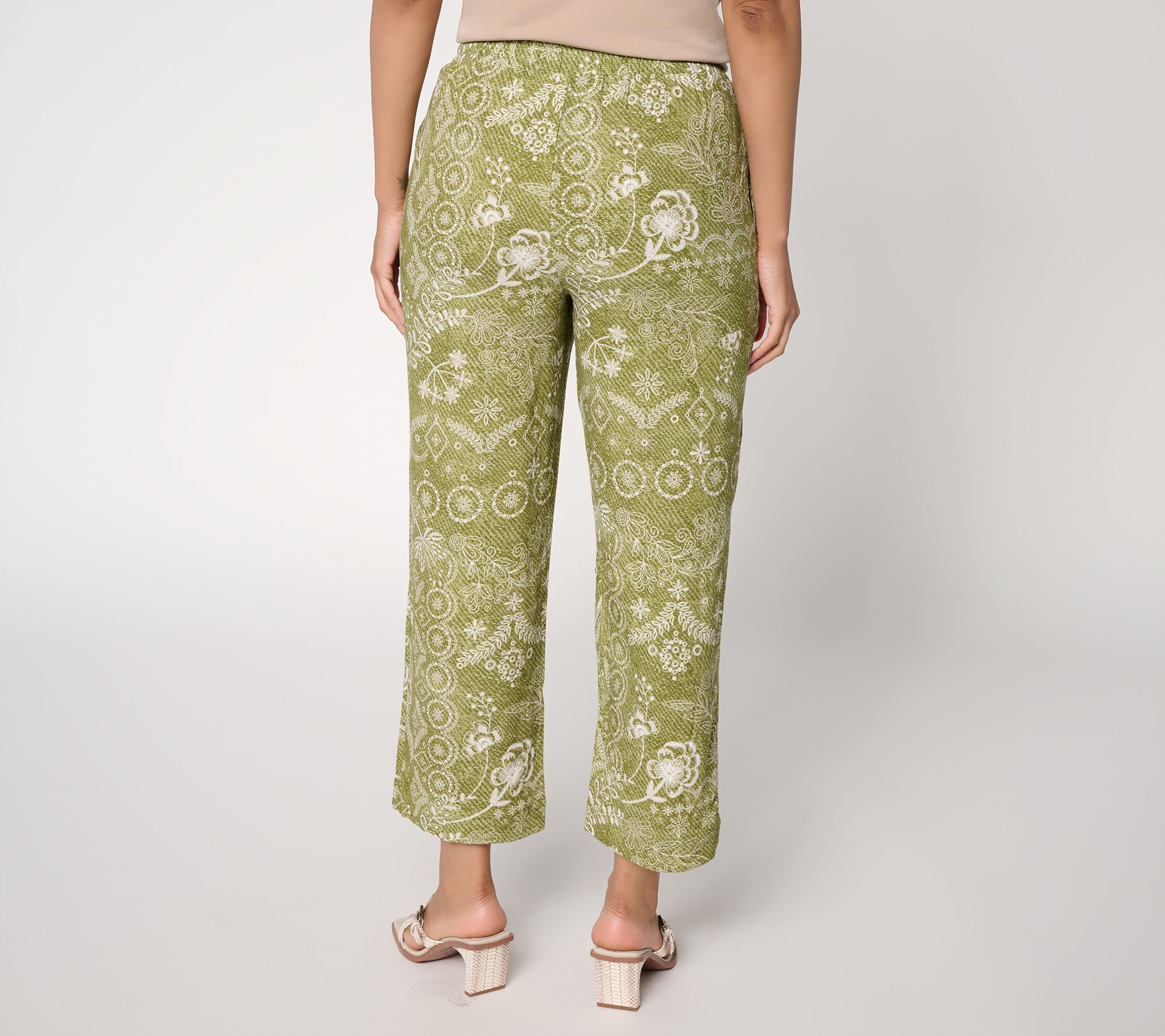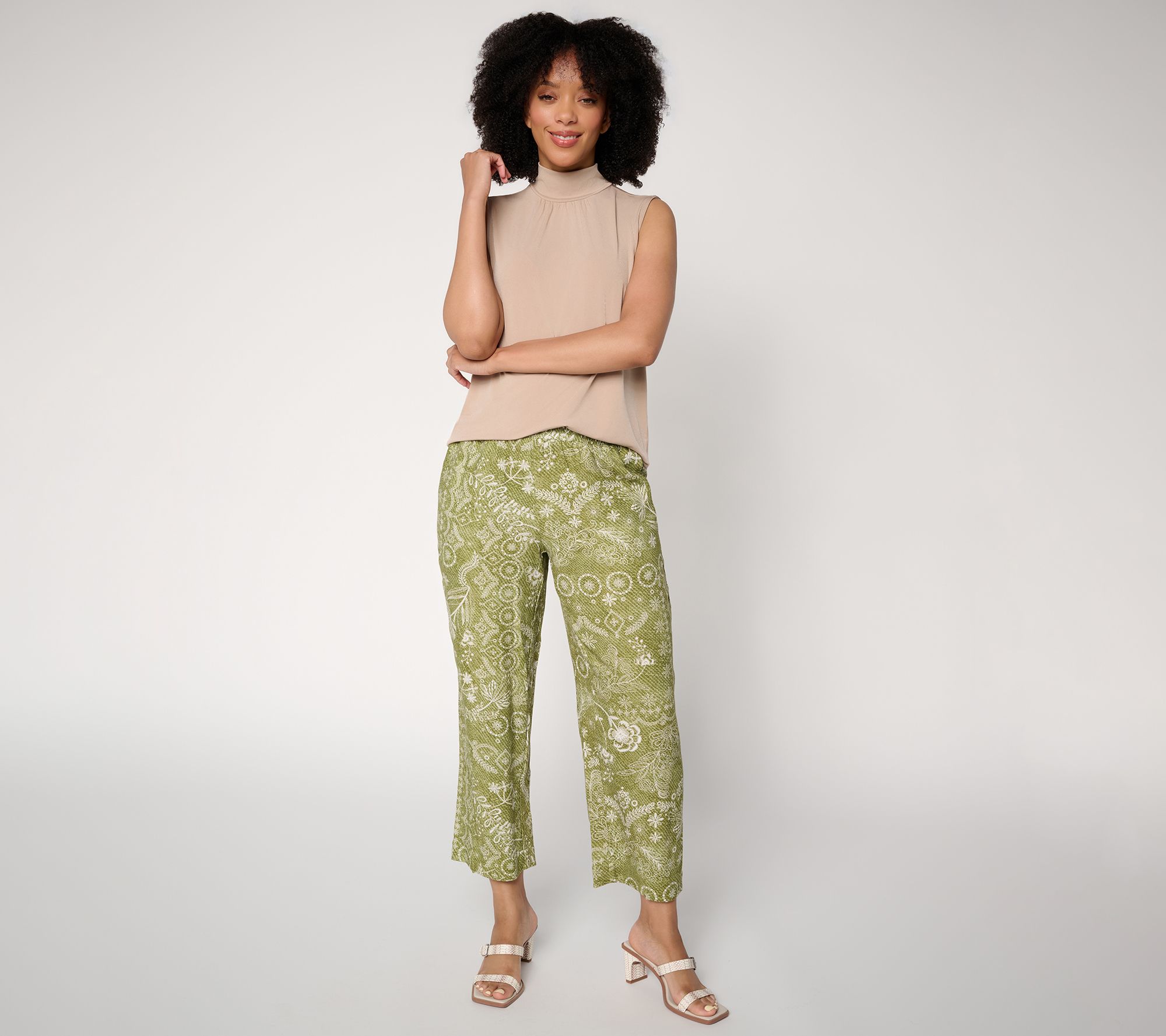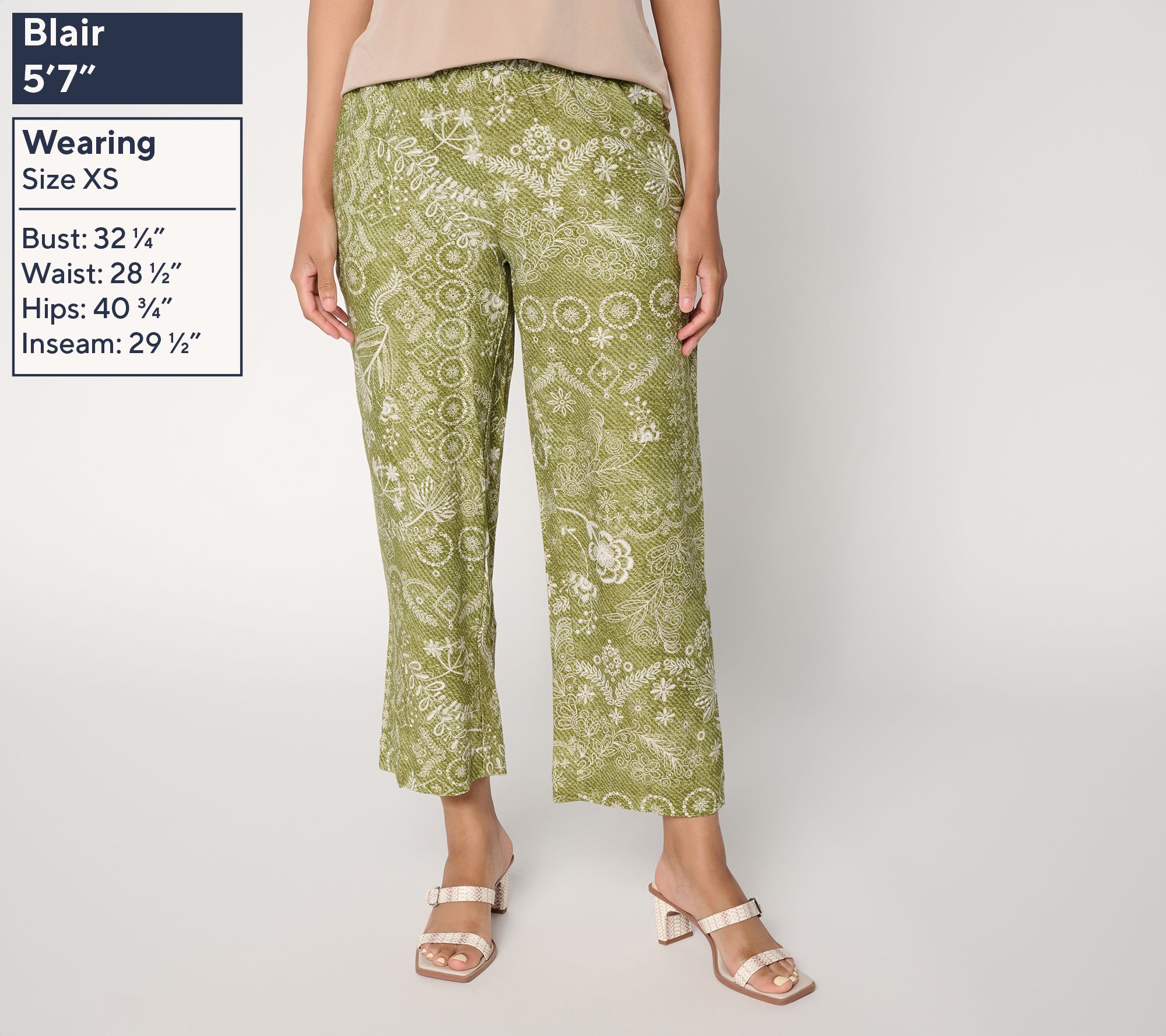 Susan Graver Weekend Regular Printed Linen Blend Wide Leg Crop Pants