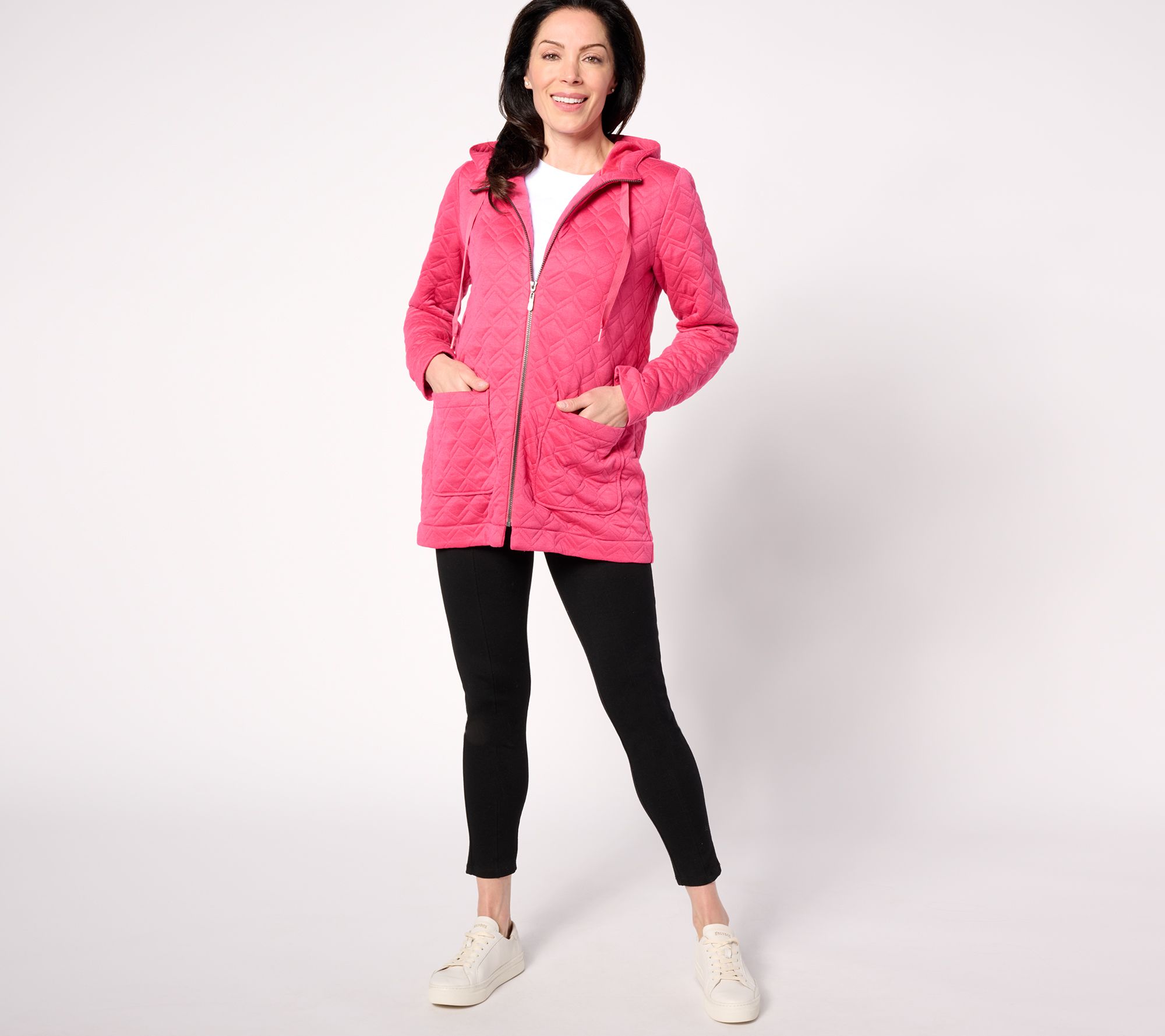 Layer up in style with this zip front jacket, featuring a quilted design and roomy front pockets for all your needs! From Susan Graver.