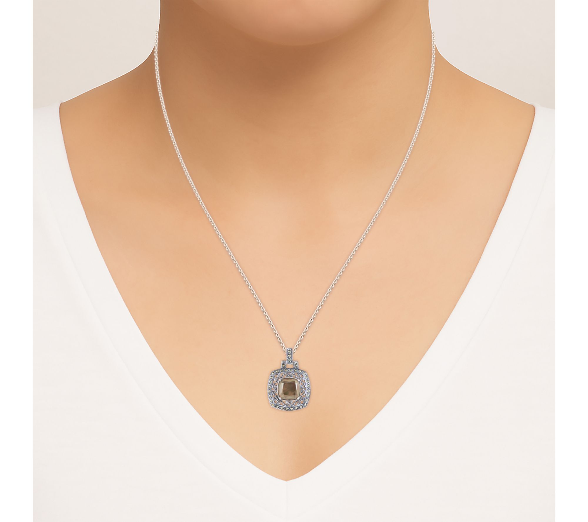 Bring effortless sophistication to your everyday or special occasion attire with this sterling silver necklace. The halo-style pendant dazzles with eye-catching cushion-cut doublet and round marcasite stones, highlighted by both oxidized and highly polished finishes for mesmerizing contrast. From Suspicion® Marcasite Jewelry.