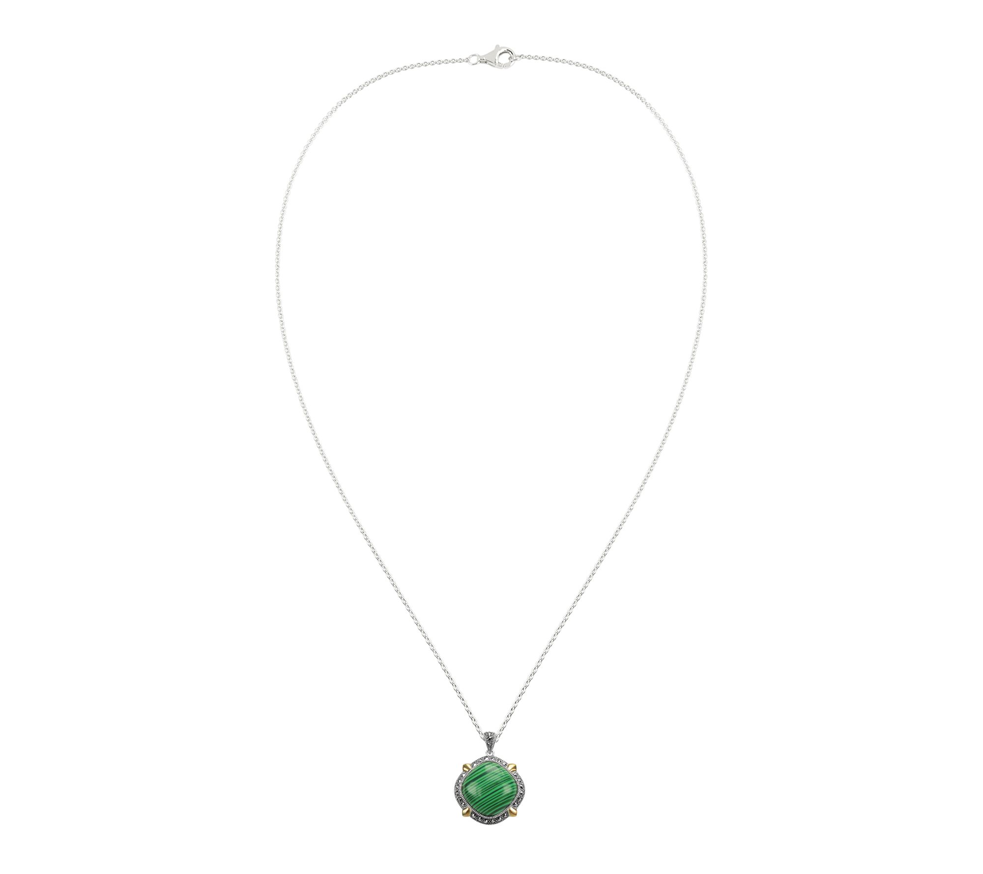 A gleaming halo of malachite and marcasite brings a little extra radiance to your every look. Whether you're dressing for dinner with friends or wanting a bit more shine for your 9-to-5, this striking pendant and chain combination in two-tone sterling silver gives any neckline a fresh touch. From Suspicion®.