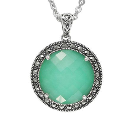 The "wow" factor. Amp up your ensemble with the jaw-dropping looks of this necklace. A crystal chrysoprase doublet and surrounding marcasite gemstones add that je ne sais quoi you crave.