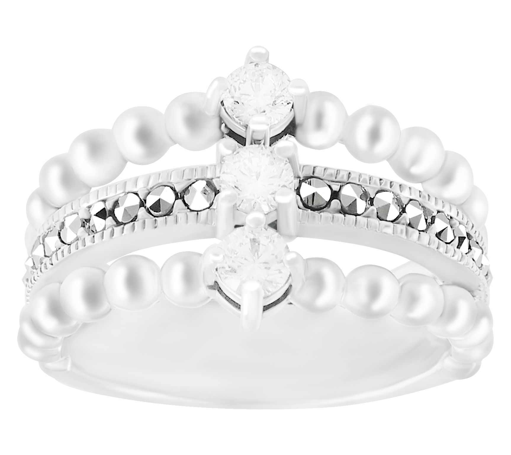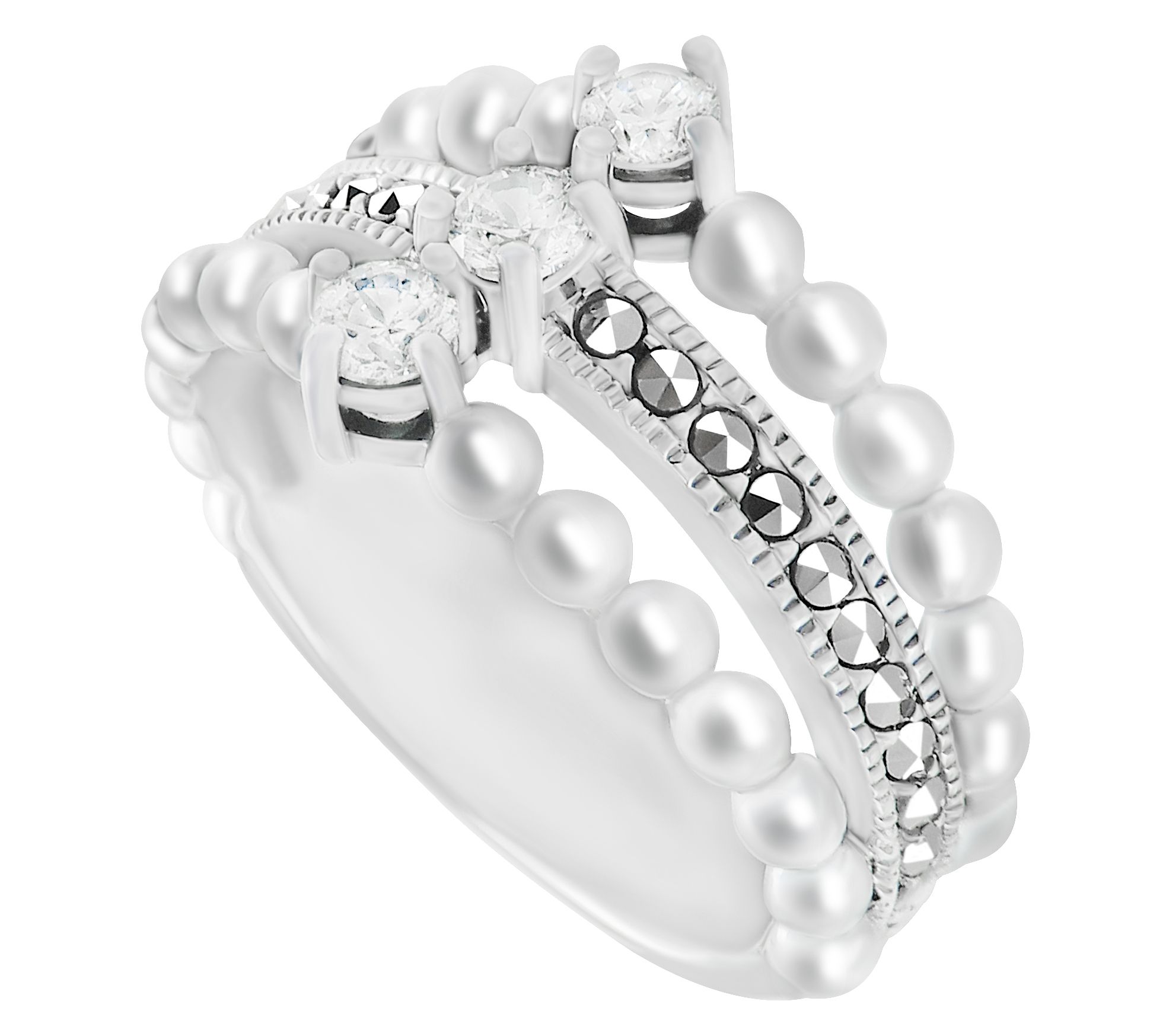 Pave-set round-cut Diamonique simulated diamonds and marcasite accents; oxidized finish