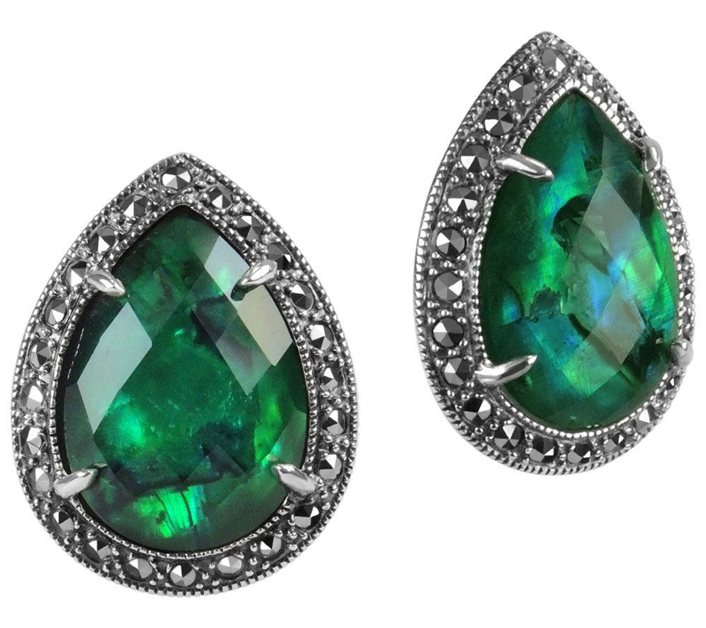 Suspicion Sterling Green Abalone & Marcasite Halo Earrings