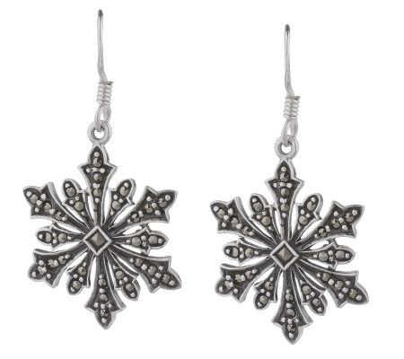 Let it snow! This elegant pair of earrings twinkles with round and square marcasite gemstones. From Suspicion(R) Marcasite Jewelry.