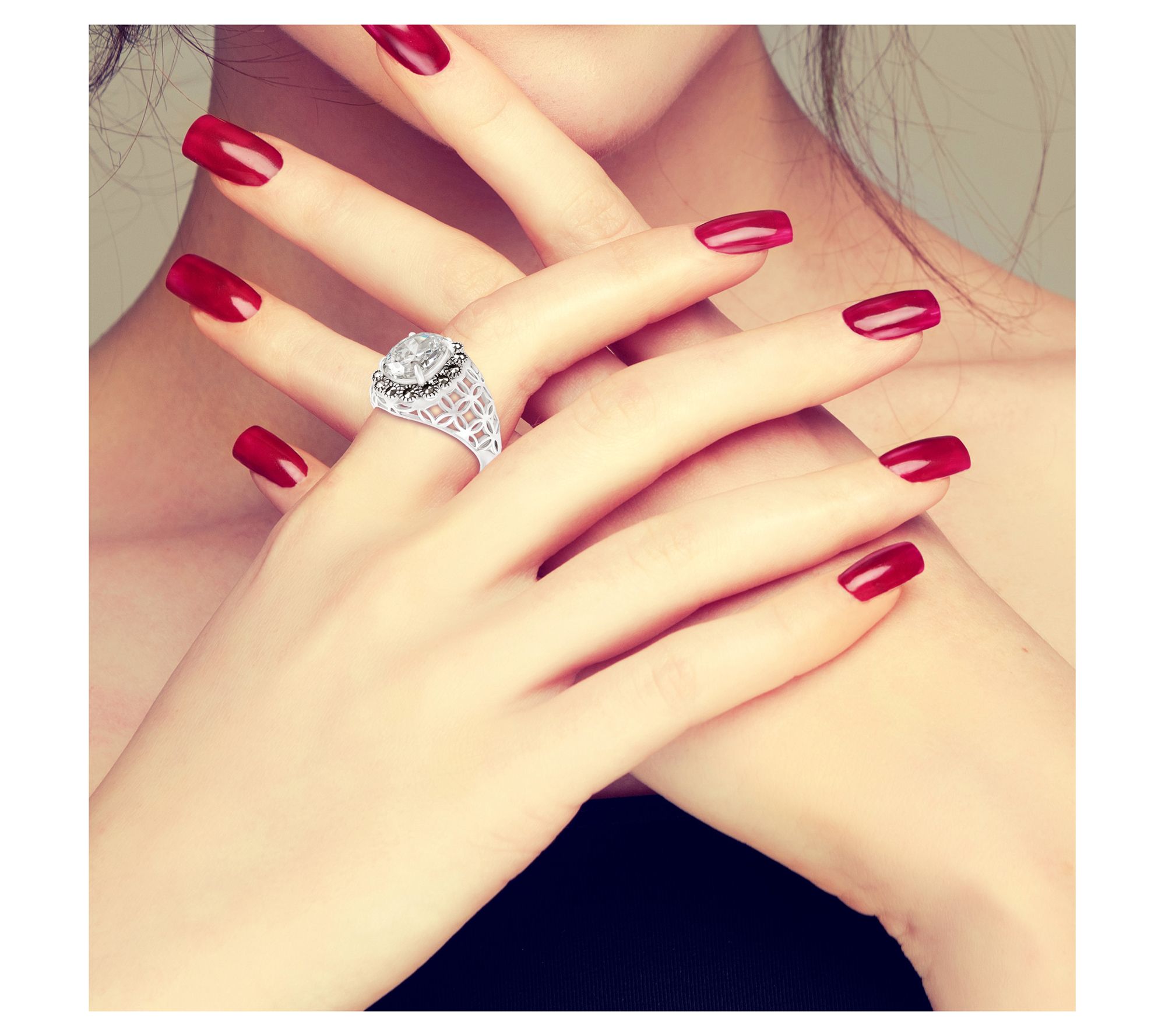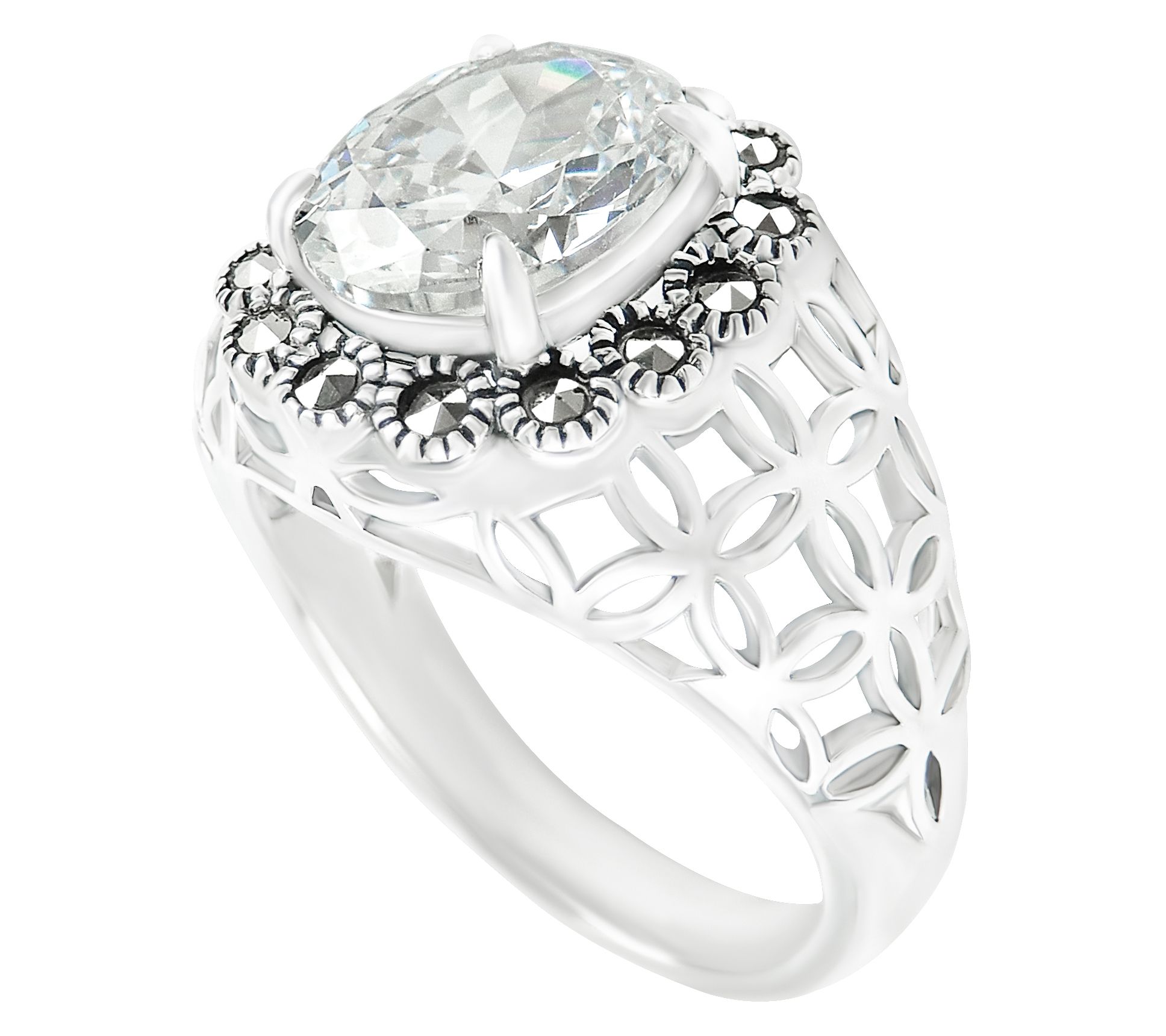 Suspicion Sterling Silver Diamonique& MarcasiteDome Ring