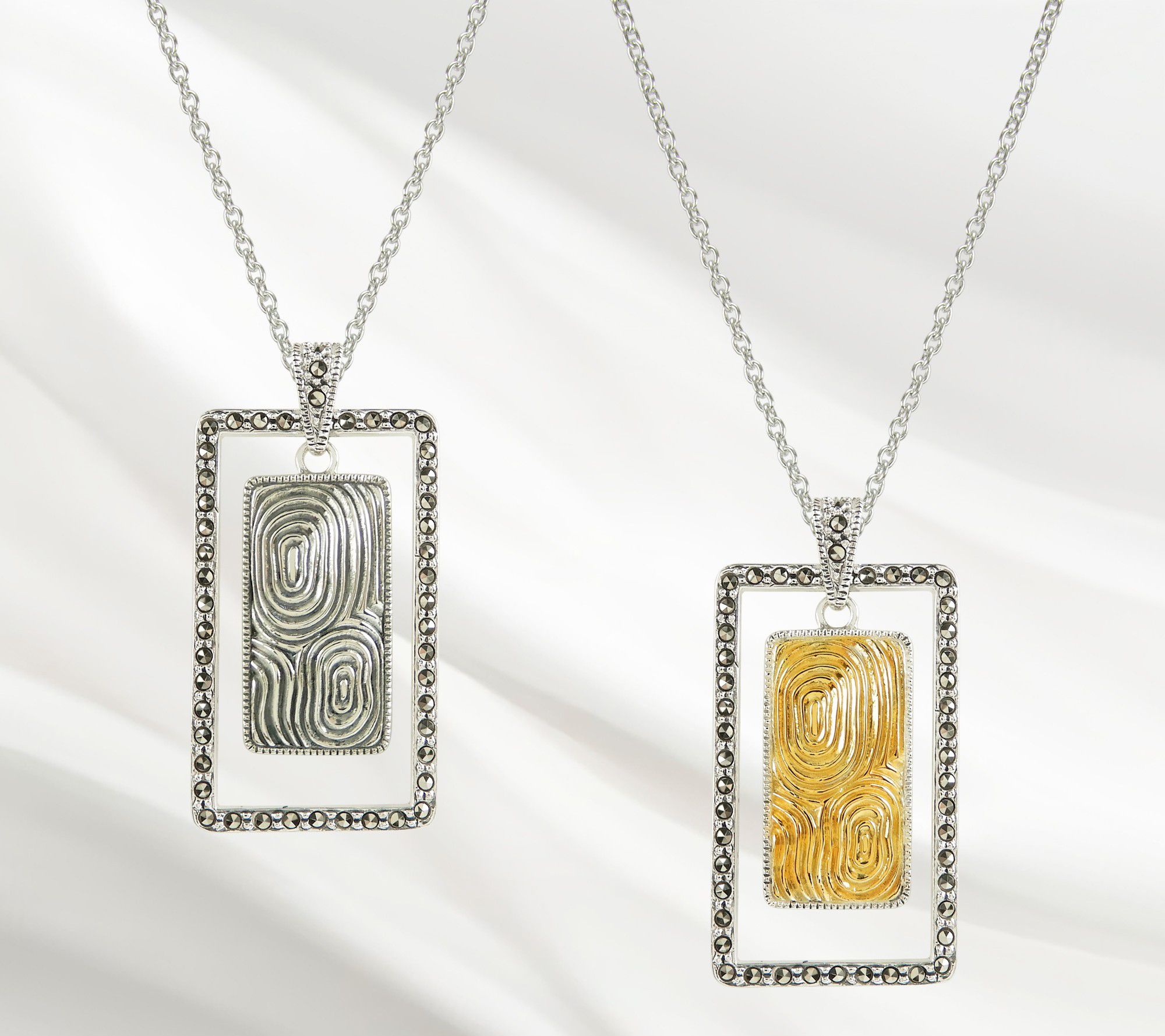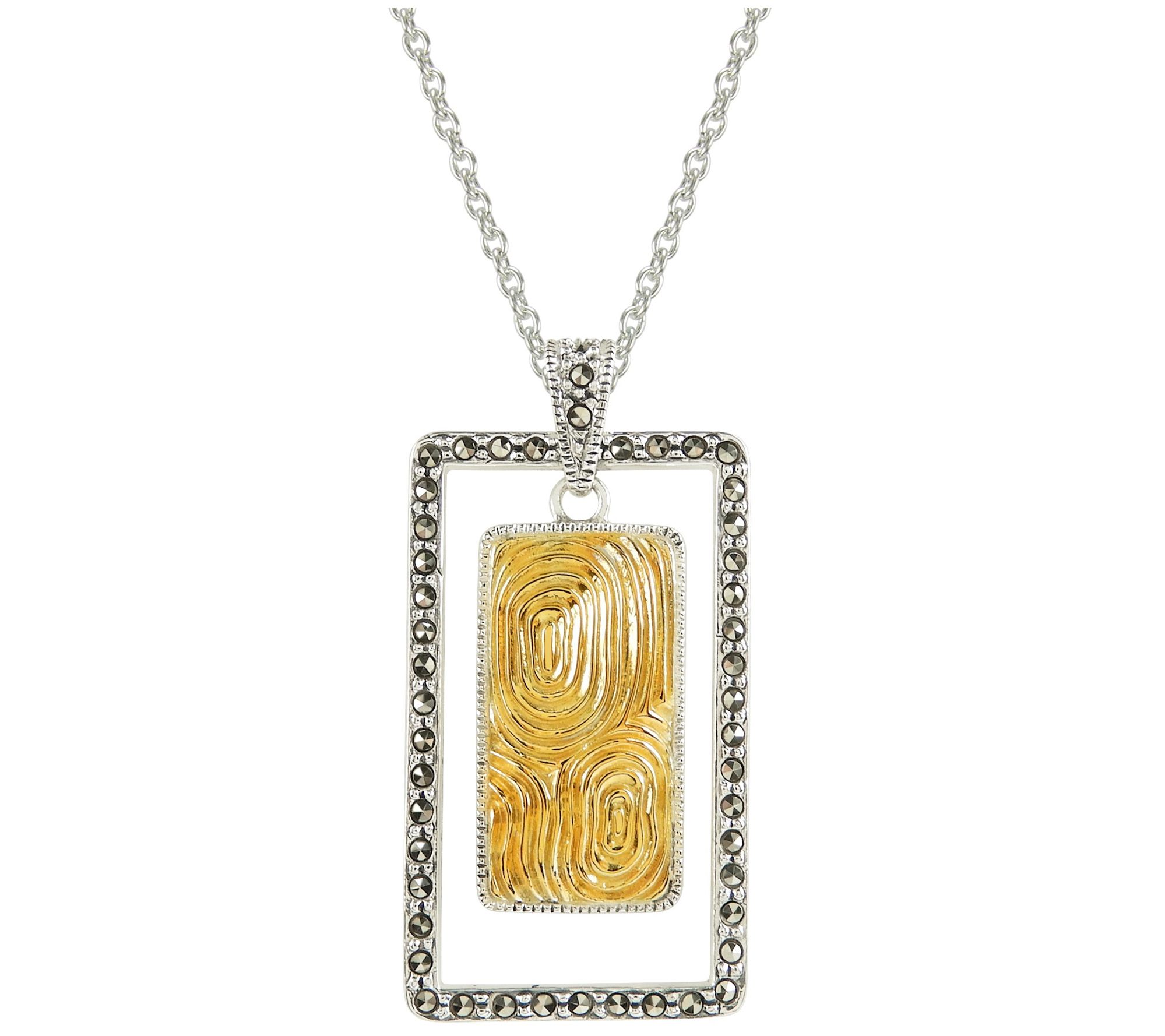 Suspicion Sterling Silver Marcasite Rectangle Pendant w/ Chain