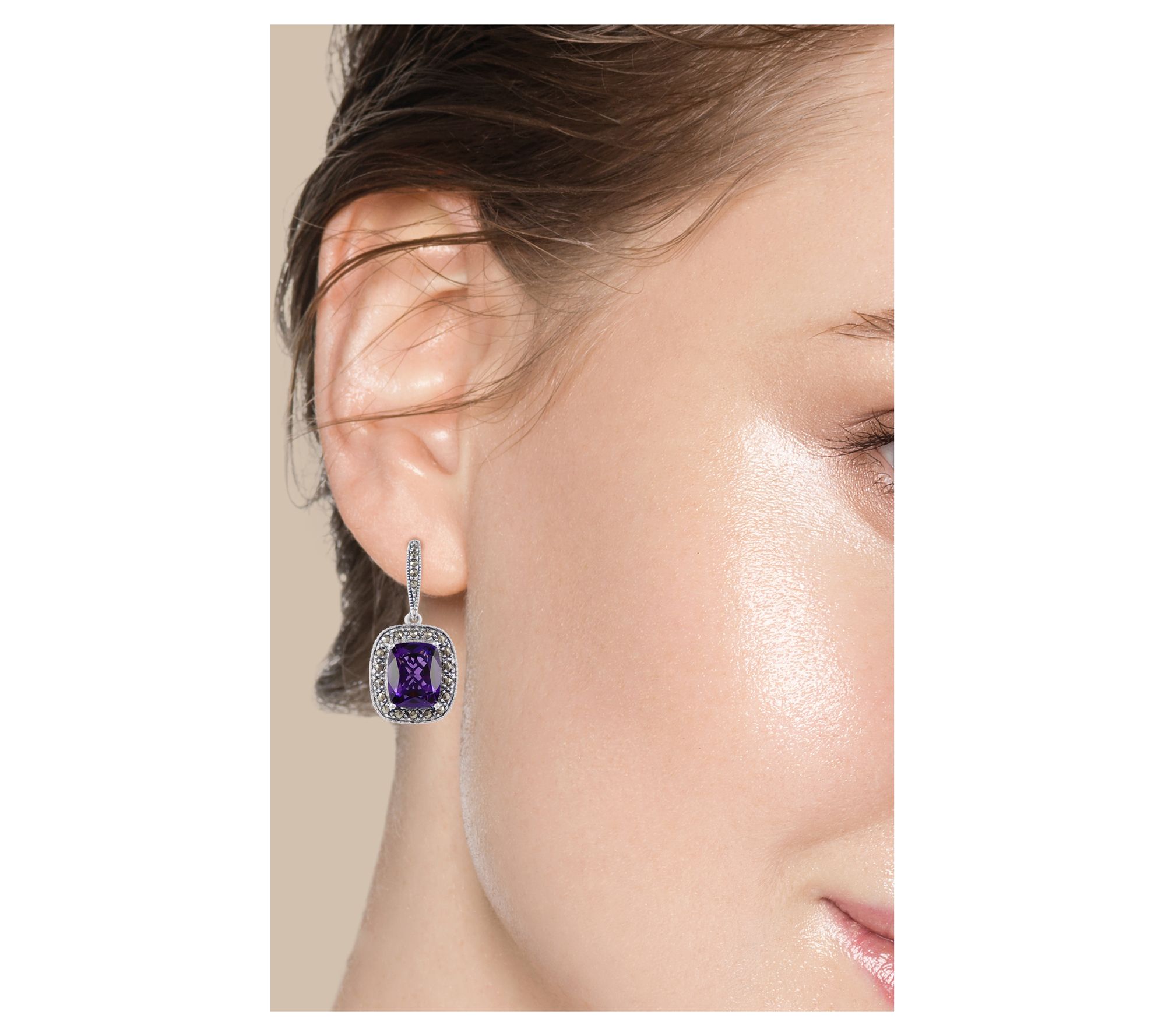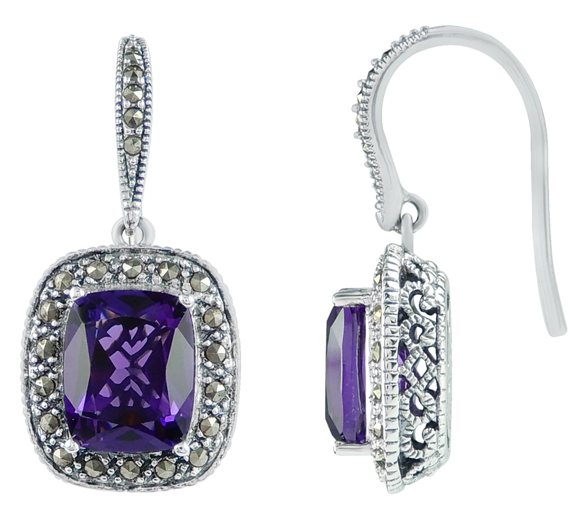Your new favorite pair of earrings has arrived. Whether you're heading to a special event or just want to elevate your everyday style, this simulated purple quartz and marcasite design is a winning choice. From Suspicion Marcasite Jewelry.