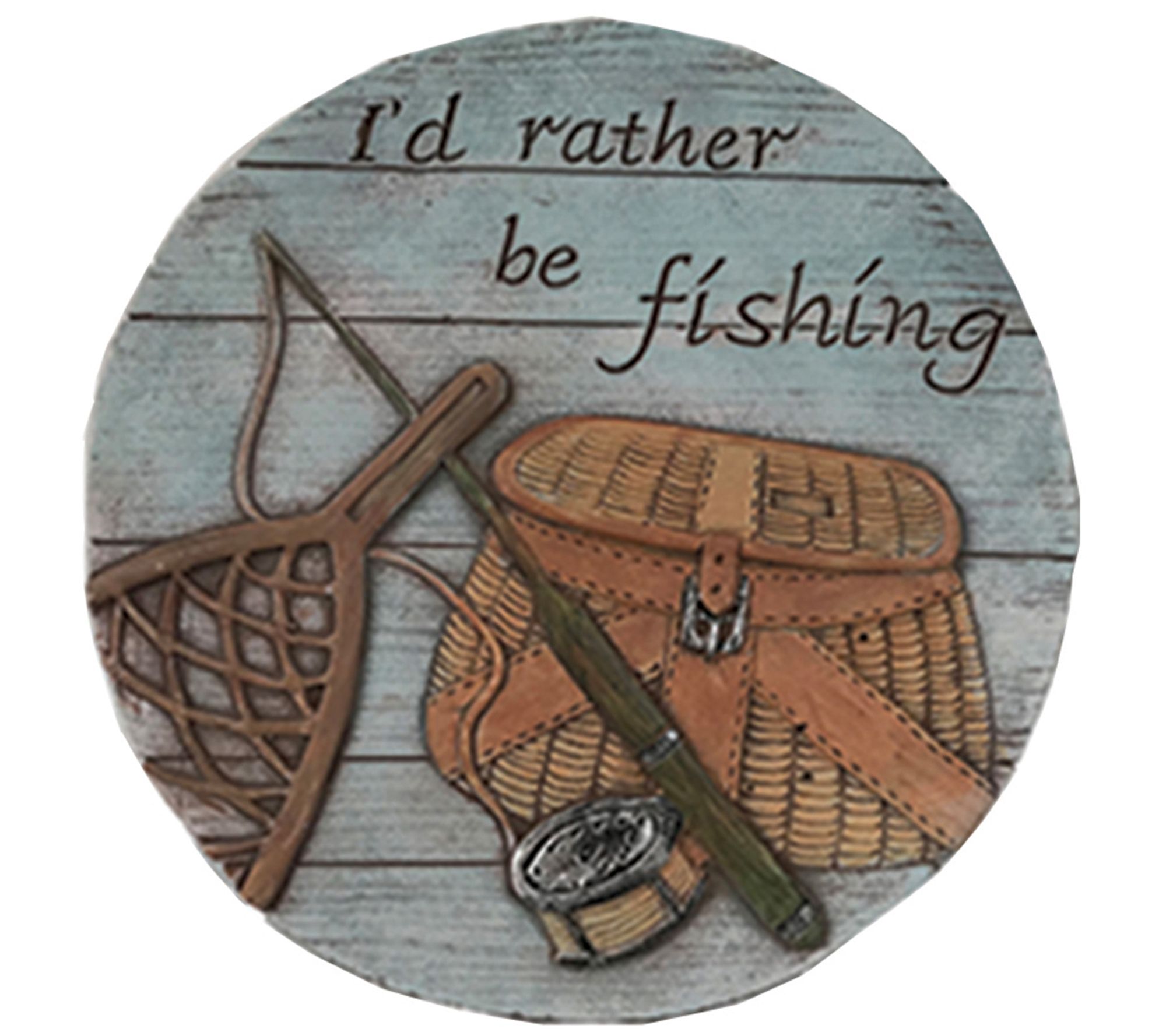 Every angler knows the fun of a bent rod and a tight line as a big fish goes for the bait. This "I'd Rather Be Fishing" stepping stone celebrates that feeling. This outdoor decor is crafted from painted cement for years of enjoyment in your space. From Santa's Workshop.