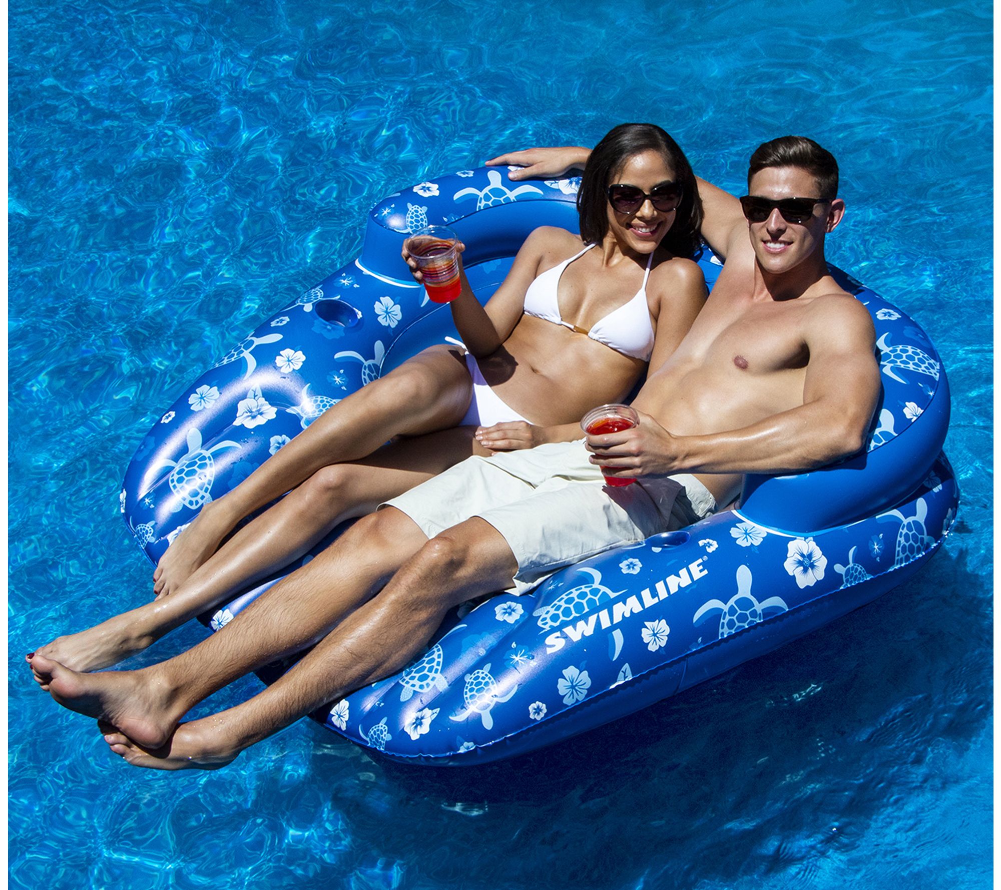 Picture yourself gliding effortlessly on the water under the sun, enjoying a peaceful moment of relaxation. This vibrant inflatable lounger is designed for ultimate comfort, with an integrated mesh seat and dual cup holders to keep your refreshments close. Whether you prefer lounging solo or with a friend, its removable center transforms into a convenient caddy for extra drinks. Perfect for those lazy pool days where fun and relaxation meet. From Swim Central.