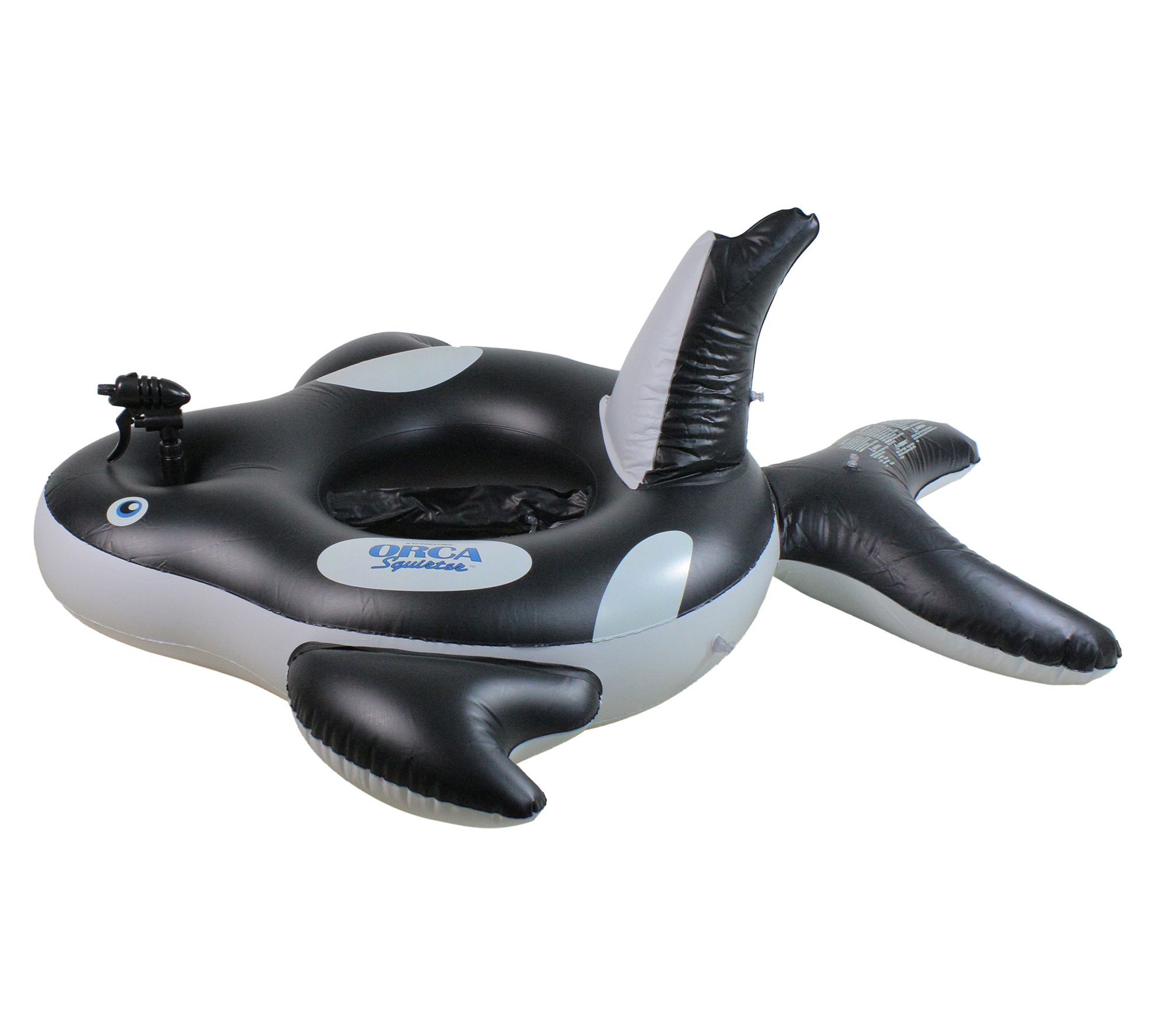 Here's a pool companion ready to make waves at your next backyard bash or when you hit the beach! This inflatable orca sports a playful squirter, promising giggles and splashes galore. Its bright colors and leg-through design let kids sit upright, paddling around joyfully. Plus, the squirter feature offers constant water fun, perfect for sunny days. From Swim Central.