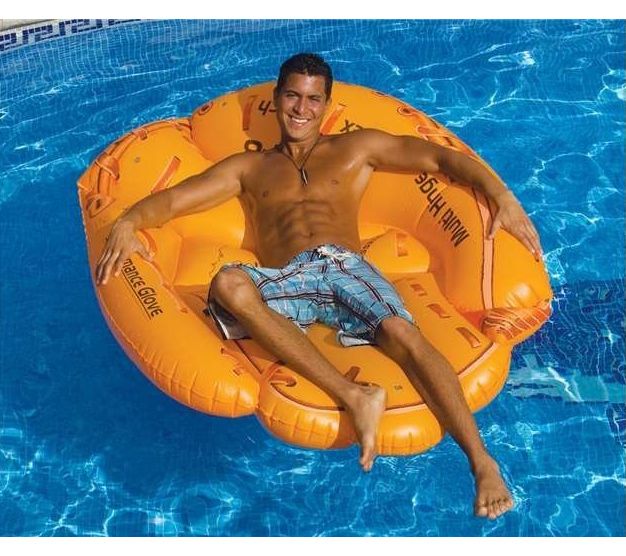 Dive into summer fun with this inflatable float, a perfect addition to any pool party or day at the lake. Shaped like a giant baseball glove and adorned with realistic printed details, this lounger brings the excitement of the game to the water. Crafted from durable vinyl, it ensures a grand slam of fun for the whole family. From Swim Central.