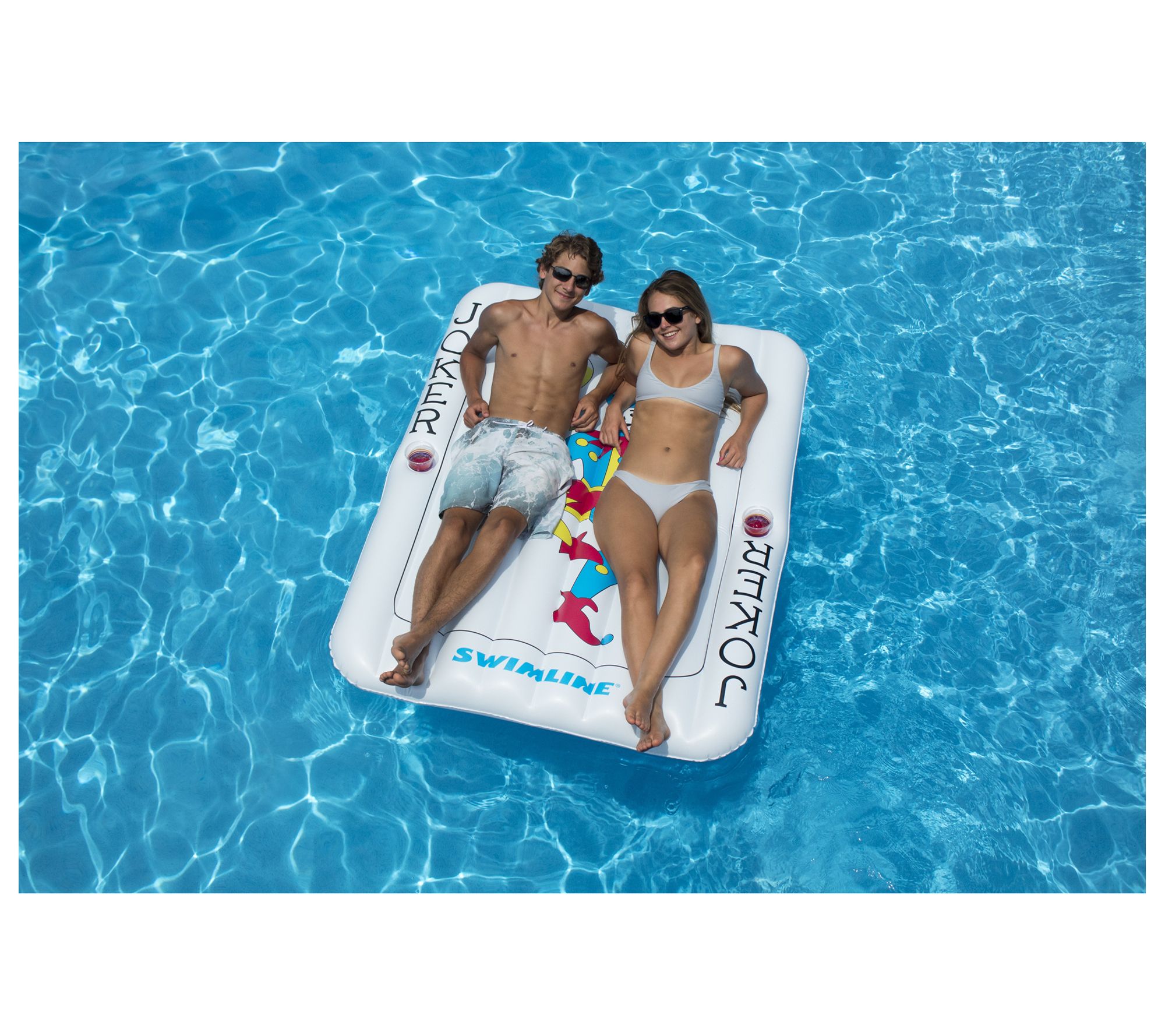 Soak up the sun and add a splash of fun to your day with this inflatable joker playing card float. This unique pool mattress brings a playful twist to your time in the water with its lively design, complete with dual drink holders for your convenience. From Swim Central.
