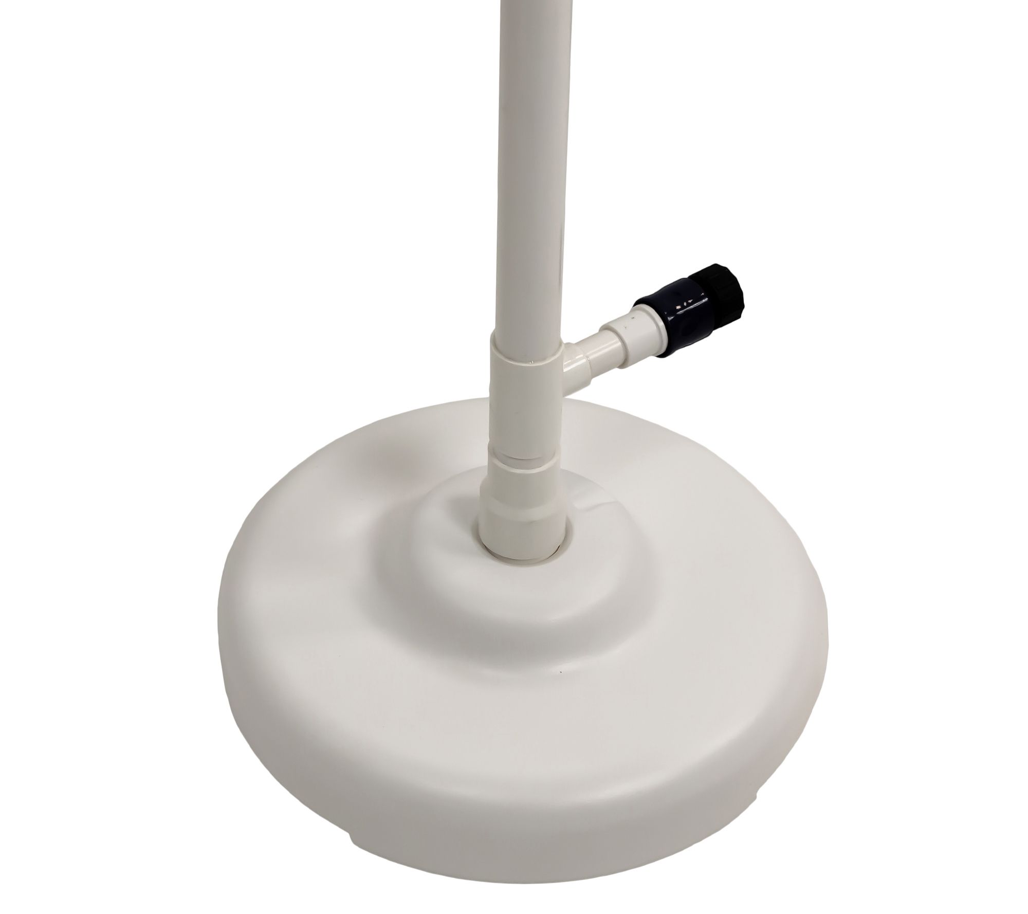 Upgrade your poolside experience with this poolside shower, a must-have for maintaining a pristine swimming area. This shower effortlessly connects to a standard garden hose, featuring a convenient foot wash spigot and a pivoting shower head for optimal use. Its durable, no-rust PVC construction and water-weighted base ensure stability and leak-free operation, making it ideal for rinsing off before or after a dip in the pool or spa. From Swim Central.