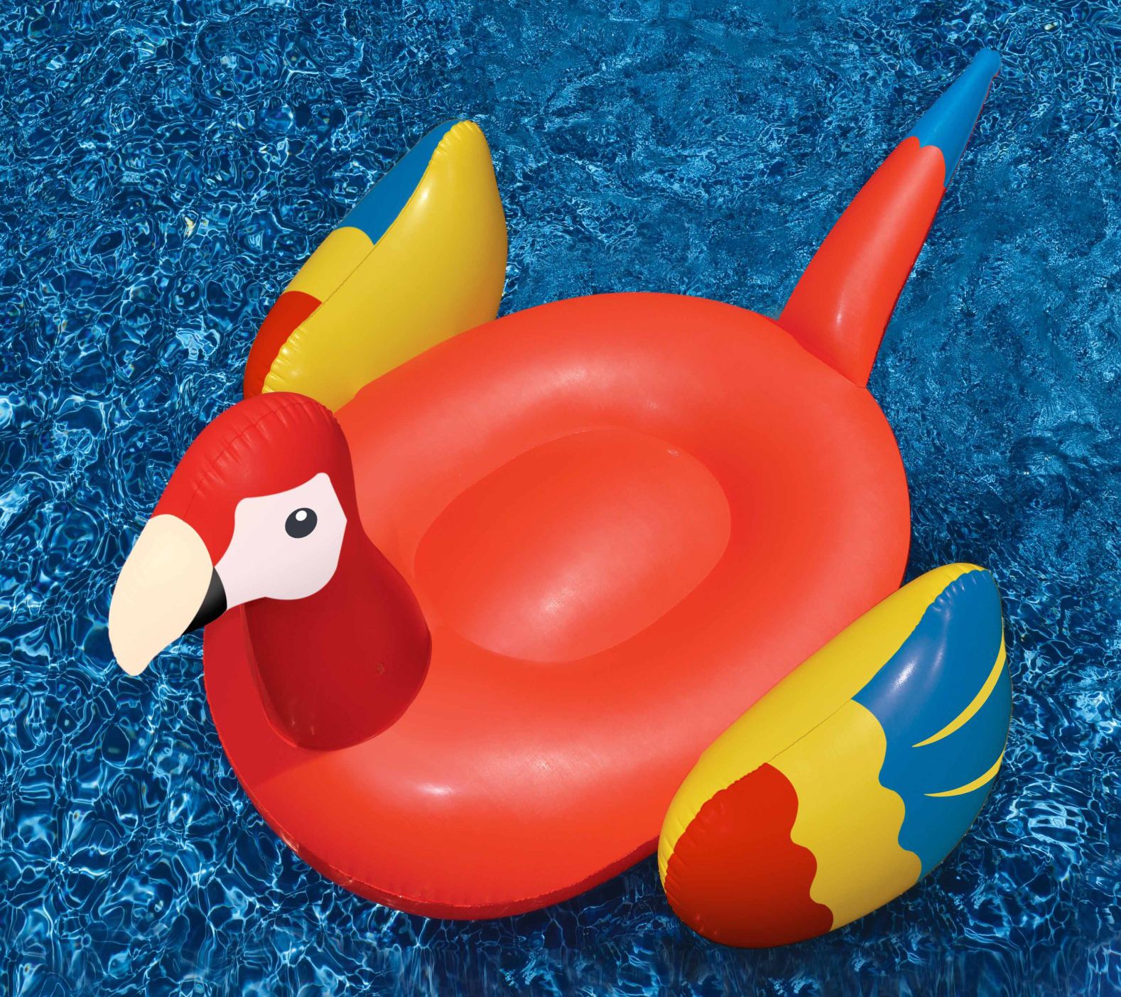 Add a splash of tropical flair to your pool days with this vibrant parrot pool raft. The bright blend of red, yellow, and blue will make you the talk of summertime fun while the bird’s tail provides a comfy headrest for lounging as you soak up the sun. Designed to bring joy and relaxation, it's more than just a raft; it's a statement piece for your leisure and enjoyment. From Swim Central.