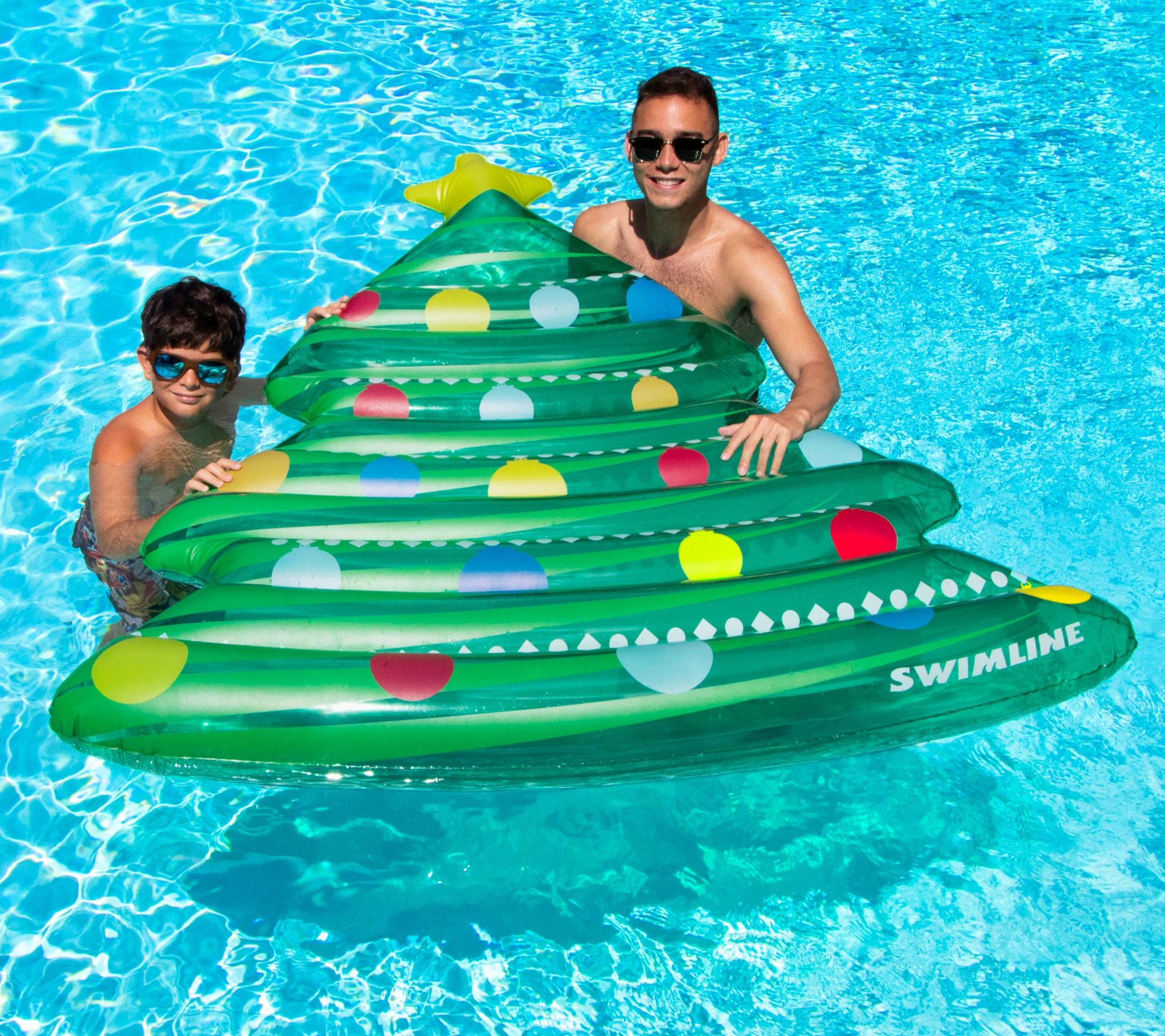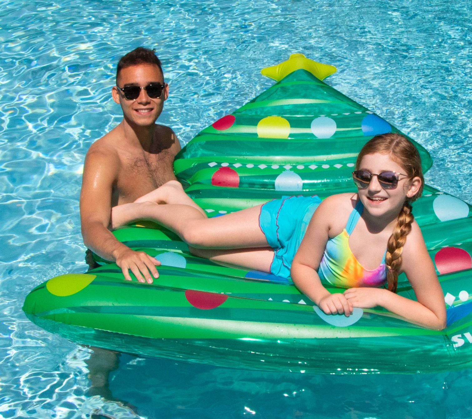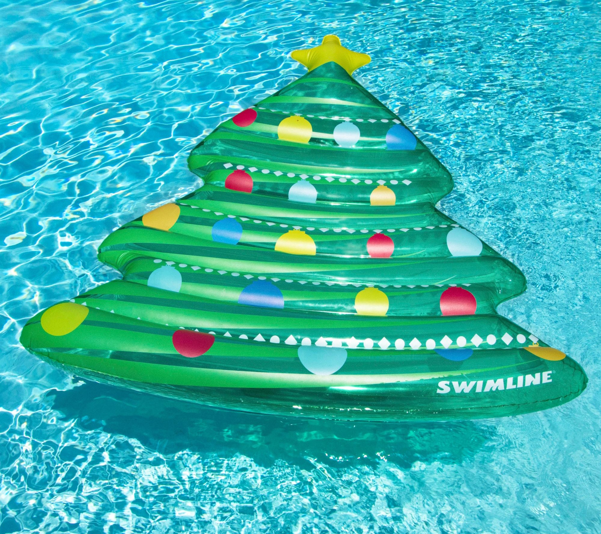 Float into holiday spirit with a splash of summer flair. Designed to resemble a vibrant Christmas tree, this inflatable pool mattress offers a unique twist to your poolside relaxation. It's roomy enough for two, making it perfect for sharing laughter and sunshine. Whether you're celebrating Christmas in July or just lounging on a sunny day, this festive float will add a cheerful touch to your summer! From Swimline.