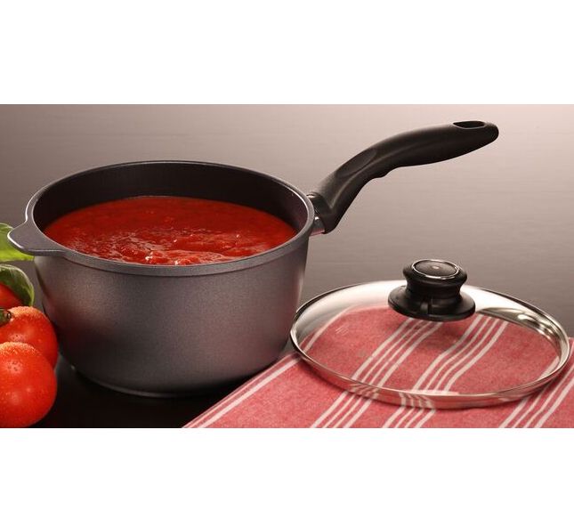 Soup's on! Your always ready for mealtime with Swiss Diamond's lidded saucepan at hand. The easy-to-clean, cast-aluminum design makes it ideal for everyday tasks like steaming veggies, cooking pastas and side dishes, and simmering sauces and soups. From Swiss Diamond.