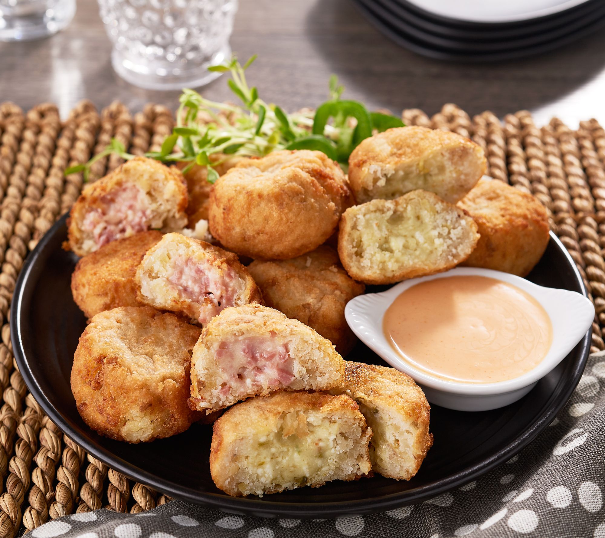 • Ham and cheese: mozzarella cheese and ham stuffed in crispy shredded potatoes