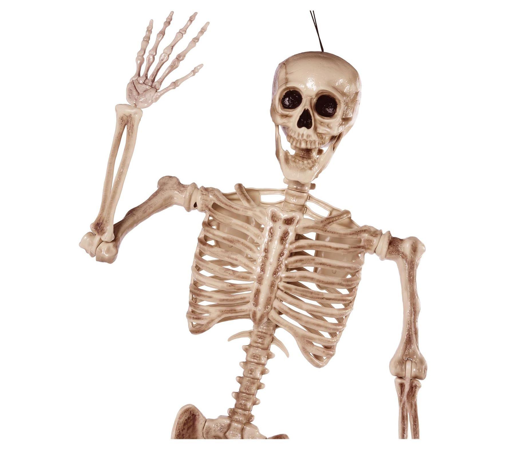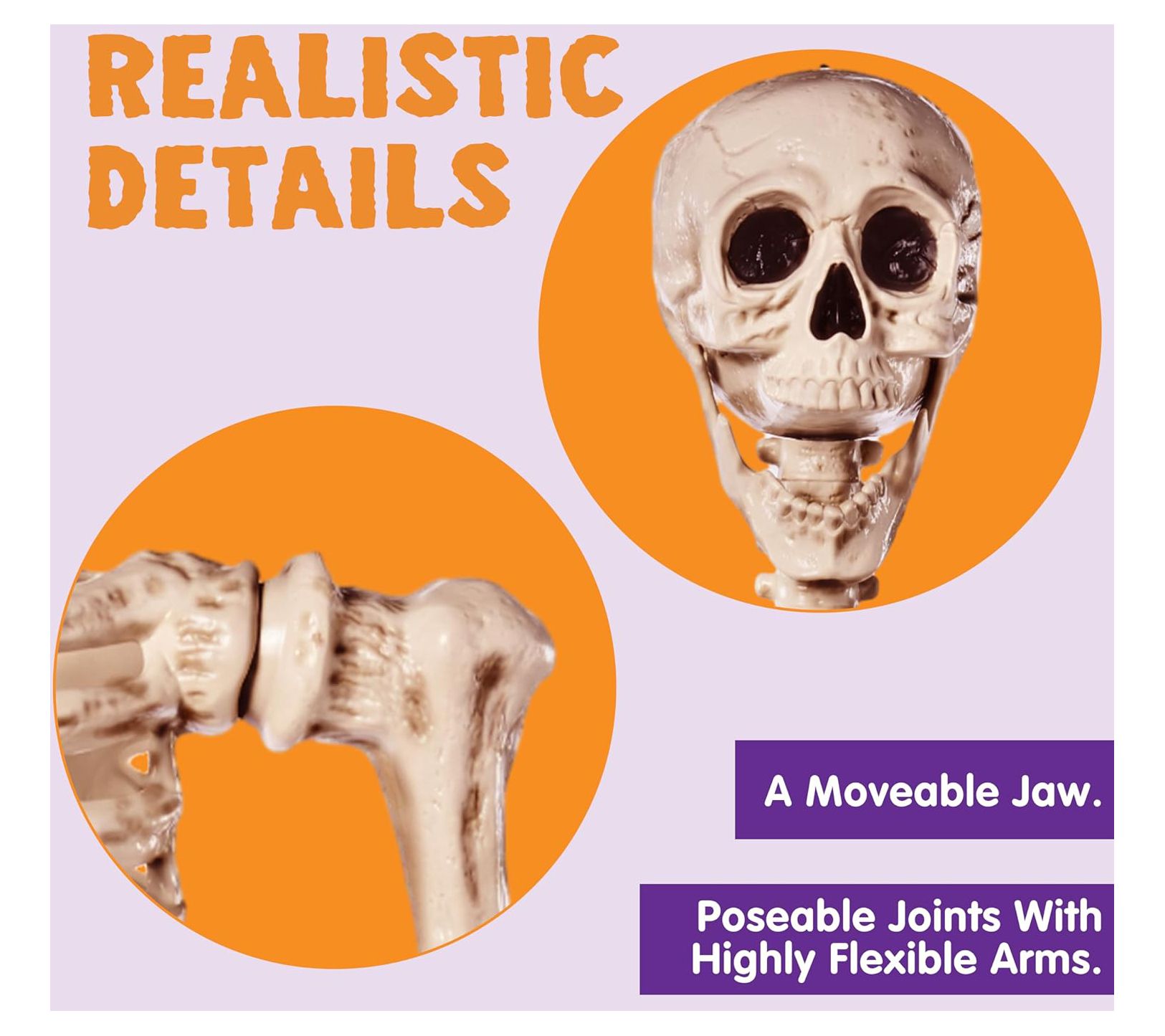 Bring a spine-chilling touch to your Halloween decor with the Syncfun posable skeleton. Standing at an impressive 5.6' tall, this life-size skeleton features fully swingable joints, making it perfect for striking dynamic poses. Whether you're setting up a haunted house or hosting a Halloween party, this durable skeleton is ready join in the fun. From Syncfun.