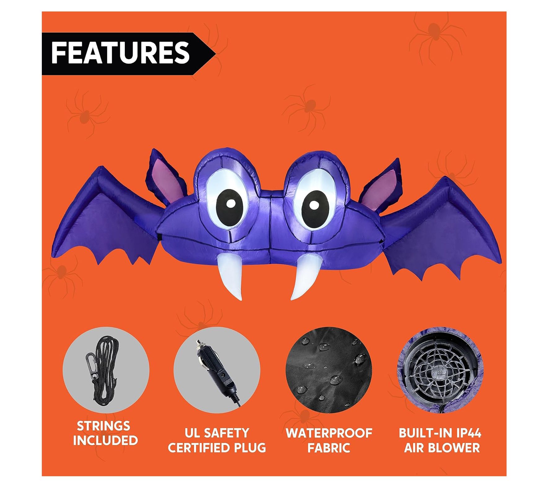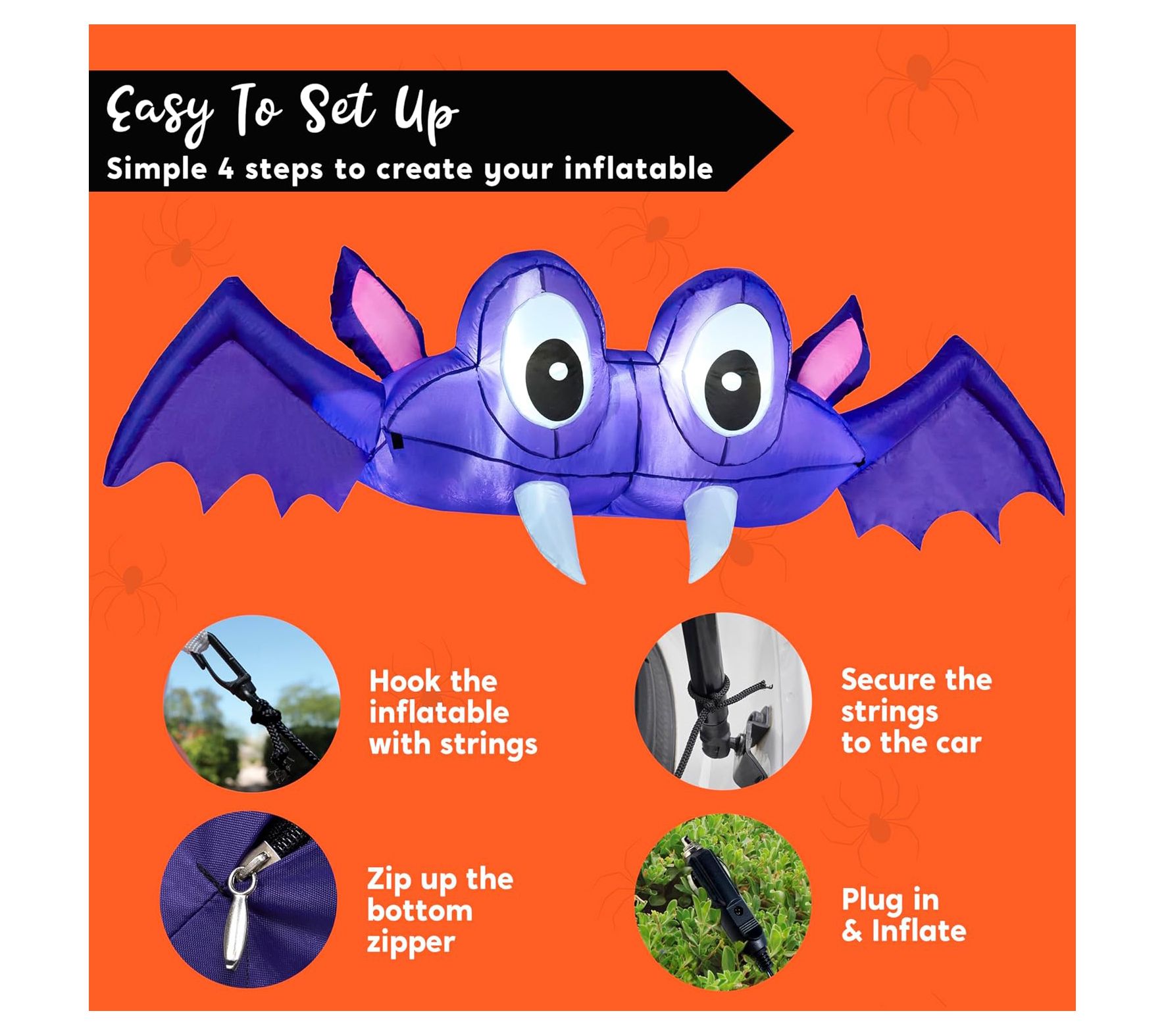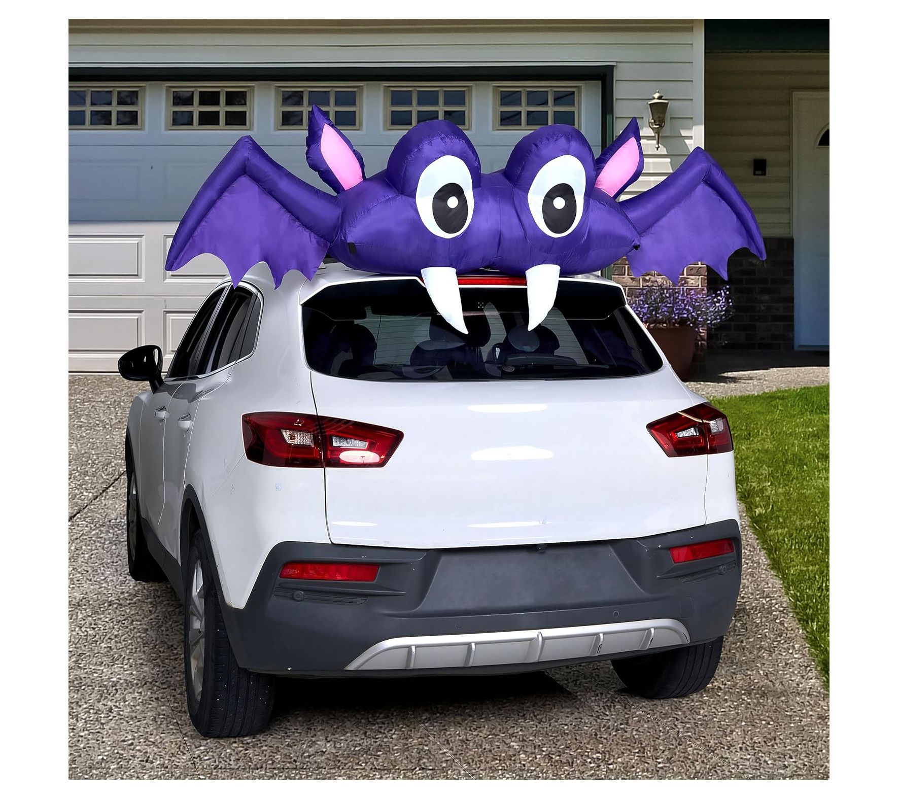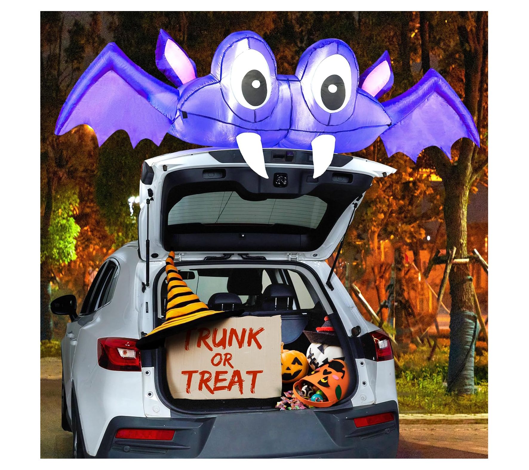 Get your Halloween festivities rolling with the Syncfun inflatable bat car trunk decor. This eye-catching decoration features built-in LED lights that cast a bright white glow, making your car trunk the talk of the neighborhood. Easy to set up and store, it’s a fun and festive addition to your Halloween outdoor decor. From Syncfun.