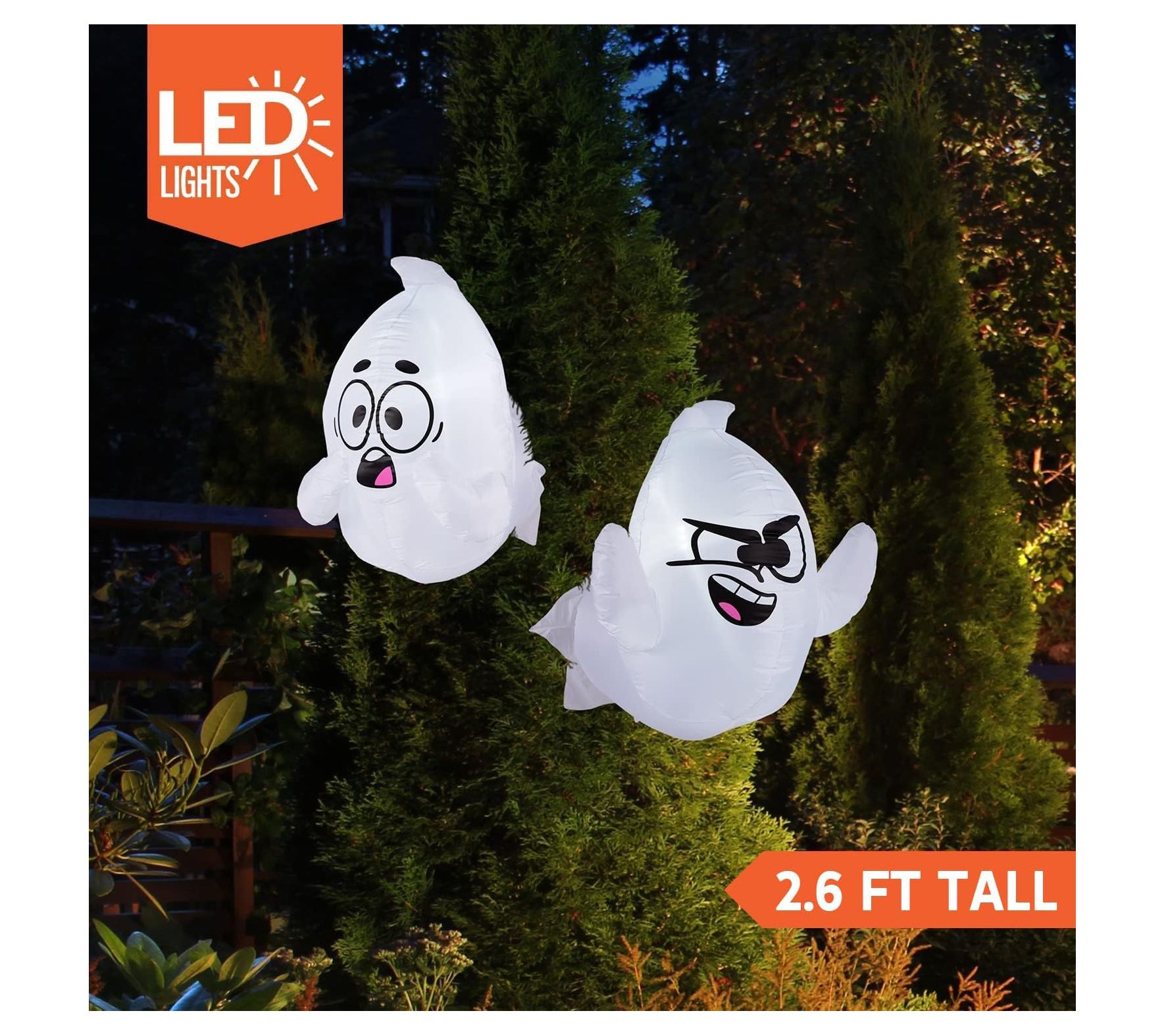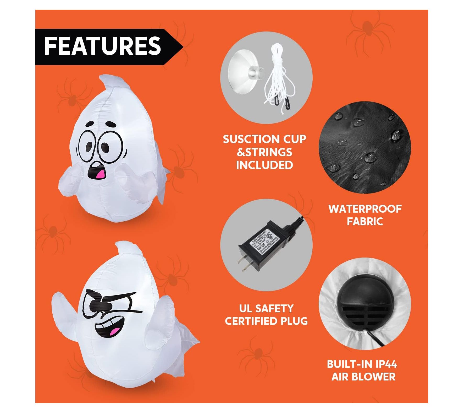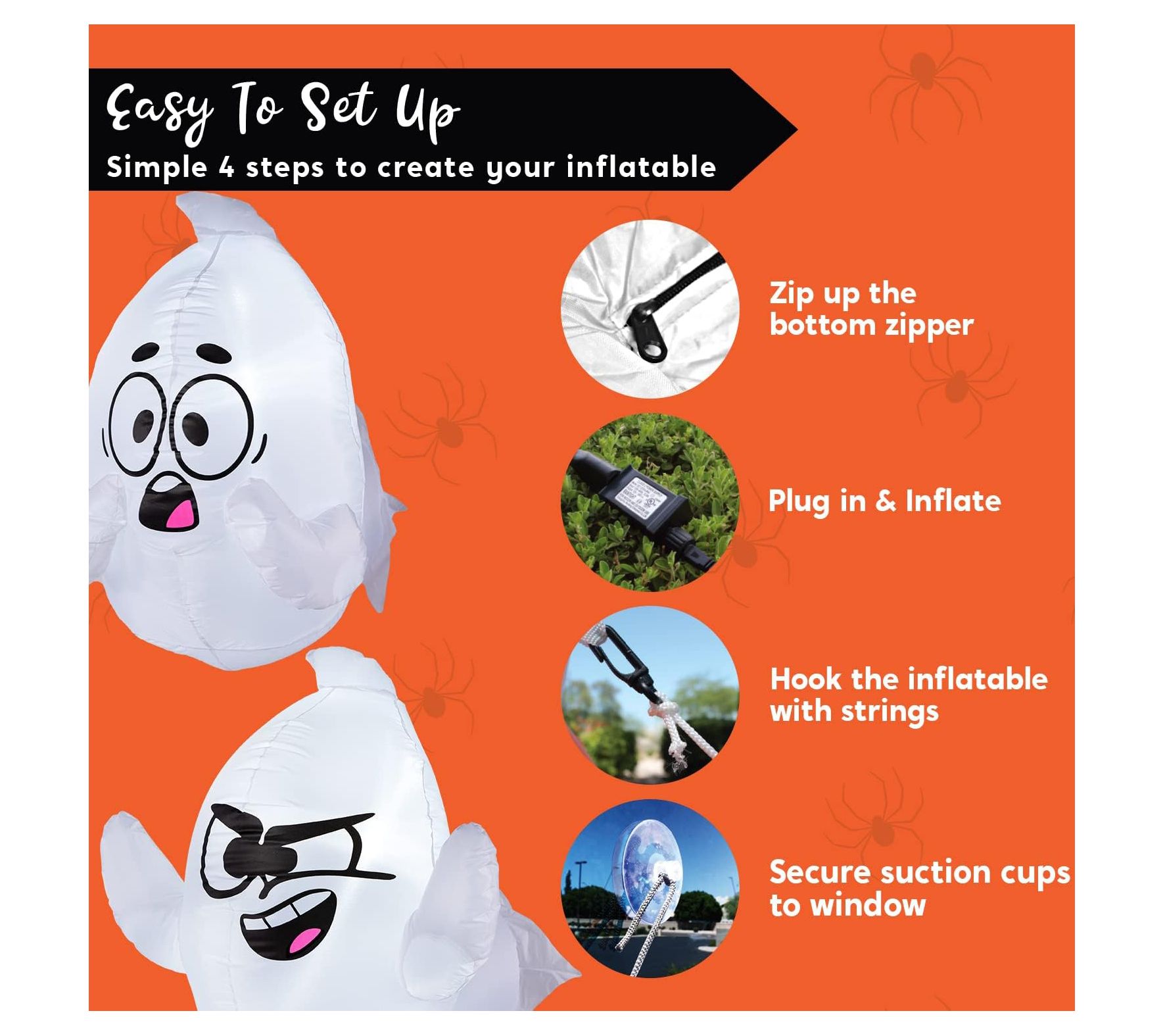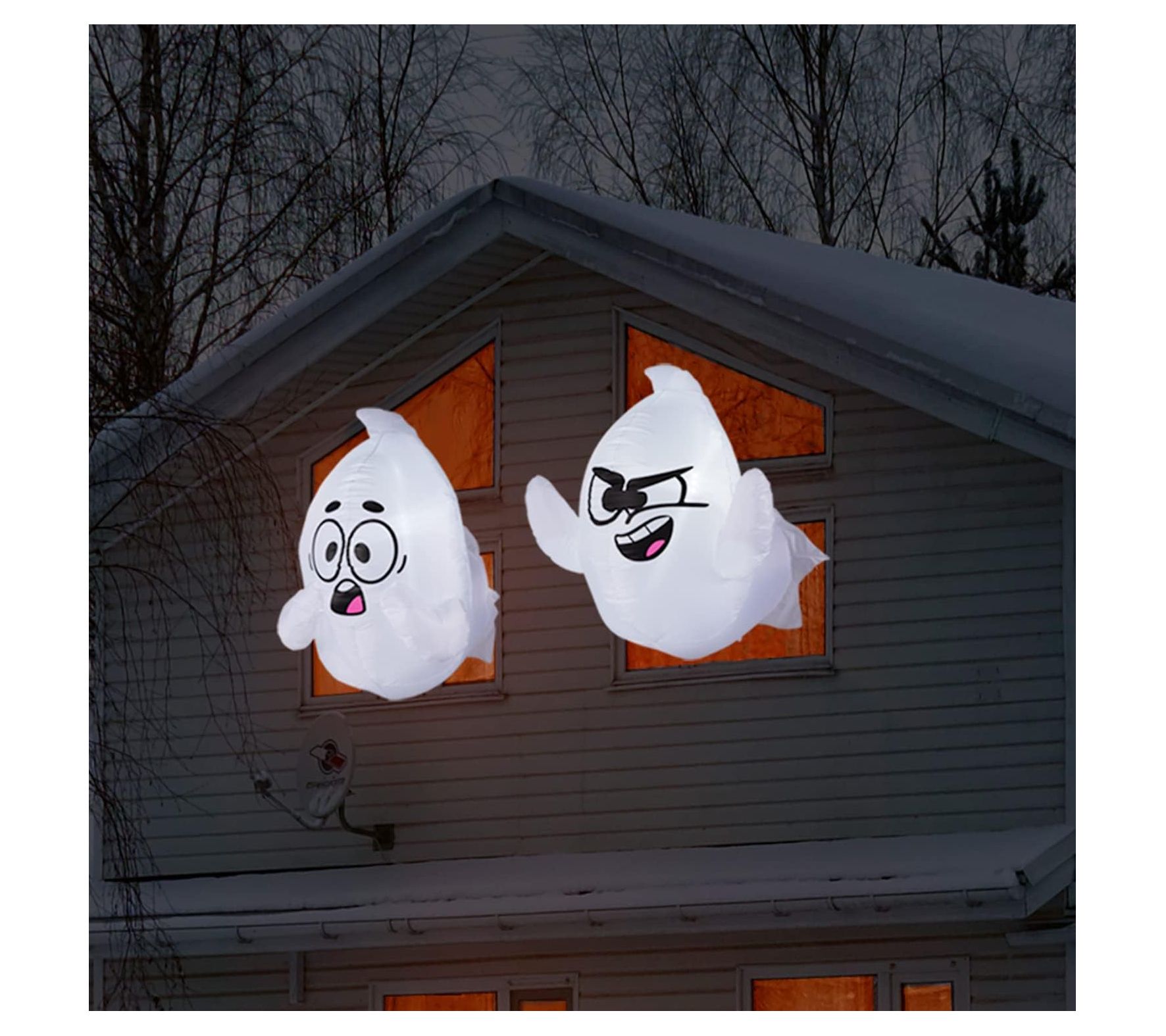 Get ready to liven up your neighborhood with the Syncfun Halloween inflatable window ghost! This decoration features bright built-in LED lights that create a hauntingly fun atmosphere. Easy to set up, just plug it in and watch it come to life. From Syncfun.