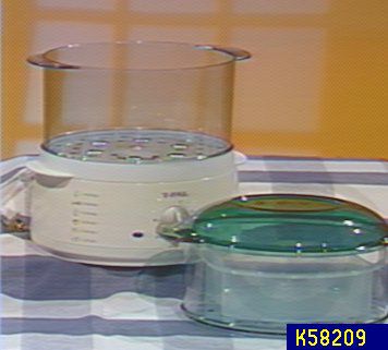T-Fal Steam Cuisine is a turbo food steamer with two tier translucent steaming bowls,a large steamer and a smaller steamer. A 1 qt. rice bowl is also included. The steamer features: a turbo steam system, 60 minute timer w/auto shut-off and drip tray.Steam cook an entire meal of fish, seafood, meat & poultry, plus rice & vegetables.Steaming food helps maintain vitamins & minerals. Both steamer bowls have integrated egg holders. Measures: 13"H x 11-1/2"L x 7-3/4"W UL Listed. 1 yr. LMW (Made in France)