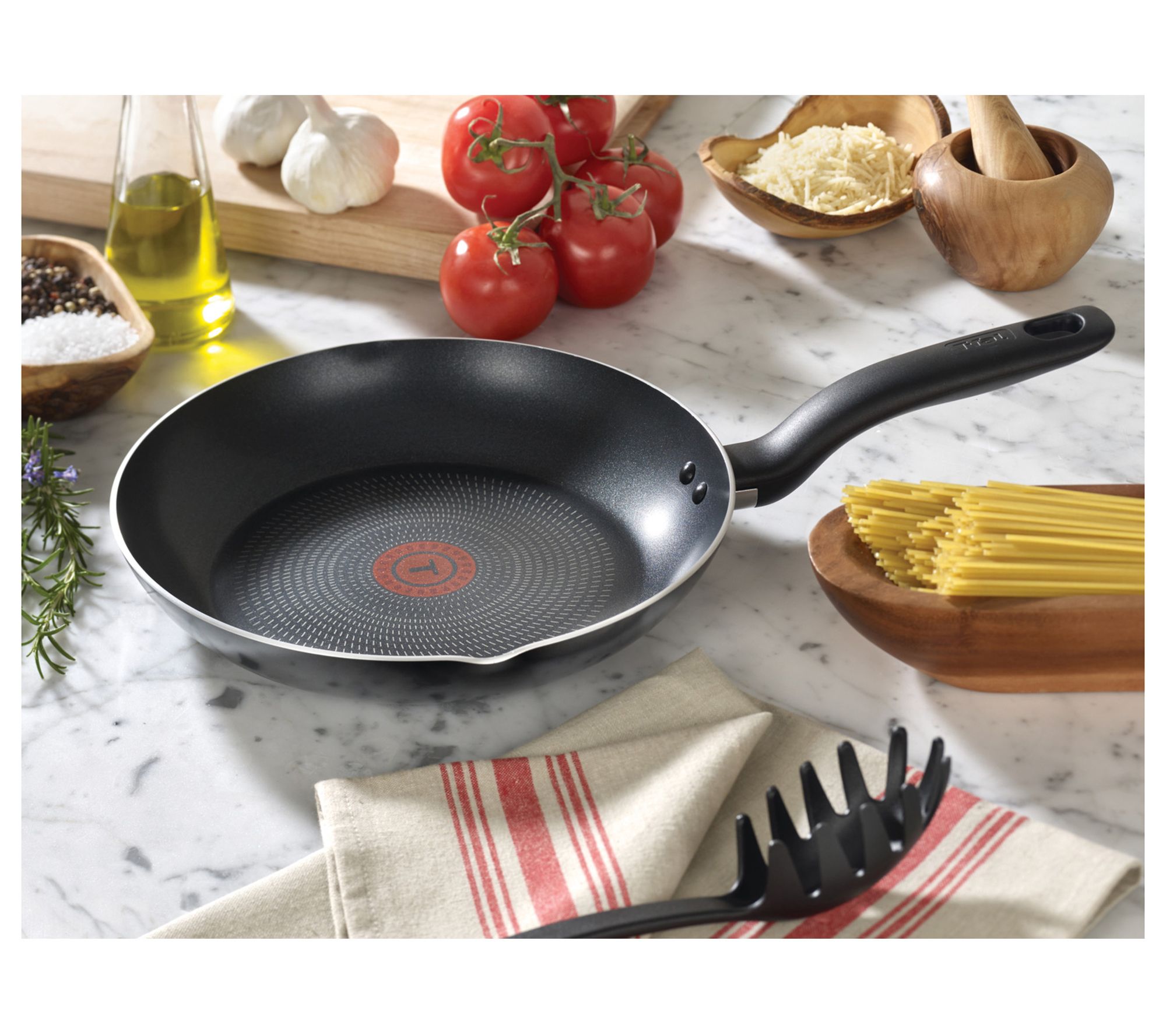 Elevate your culinary creations with this cookware set designed for the everyday chef. The two fry pans and griddle all feature Pro-Glide nonstick interiors for effortless food release and cooking with minimal oil. With Thermo-Spot technology for perfect preheating and even cooking, plus compatibility with all cooktops except induction, these pieces are essential for everything from searing steaks to flipping pancakes. From T-Fal.
