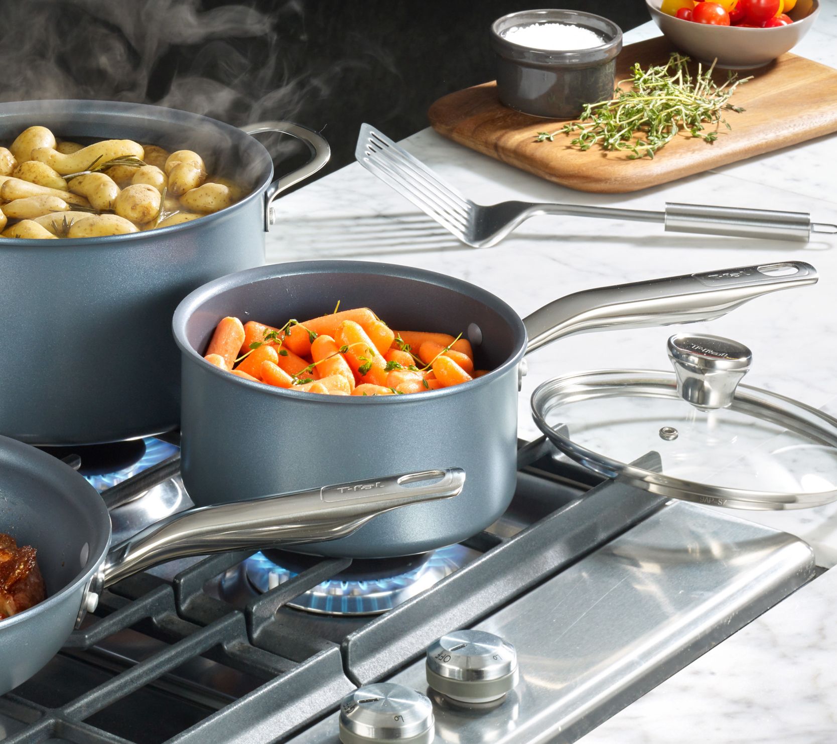 Looking for cookware that works just as hard as you do? This Platinum two-quart saucepan features quick, even heating on a nonstick interior to help make cooking and cleaning a breeze. T-fal.