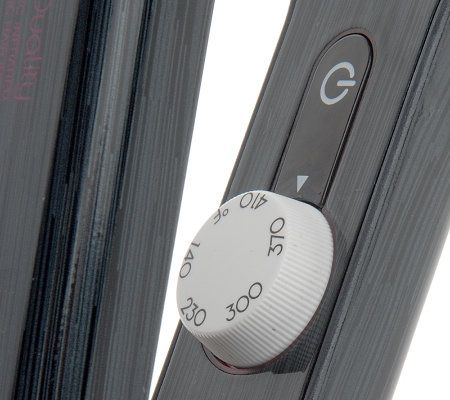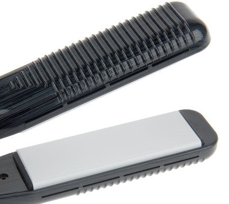 Why is it different: Utilizing unique tourmaline mineral, this superior iron helps eliminate unattractive static while locking in moisture, ensuring healthy styling all the time. The iron's fixed plates--with no gap--deliver a smooth glide. Advanced digital technology heats the iron in seconds, maintaining consistent temperature levels. Also included are six anti-static heat resistant combs, a travel pouch, and a heat-resistant mat.