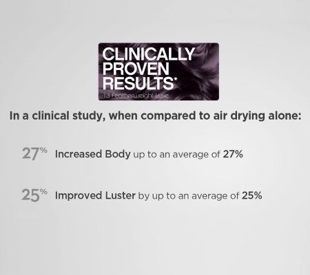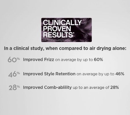 Why is it different: The T3 Featherweight Luxe is clinically proven to help improve hair when compared to air drying. The Featherweight Luxe delivers a high volume of ionic airflow with penetrating infrared heat that exits the concentrator nozzle at the ideal speed and heat to help dry large sections of hair at a time. Hair feels smoother and softer, and looks radiantly beautiful and vibrant. Benefits include improved shine, smoothness and silkiness, and long-lasting style.