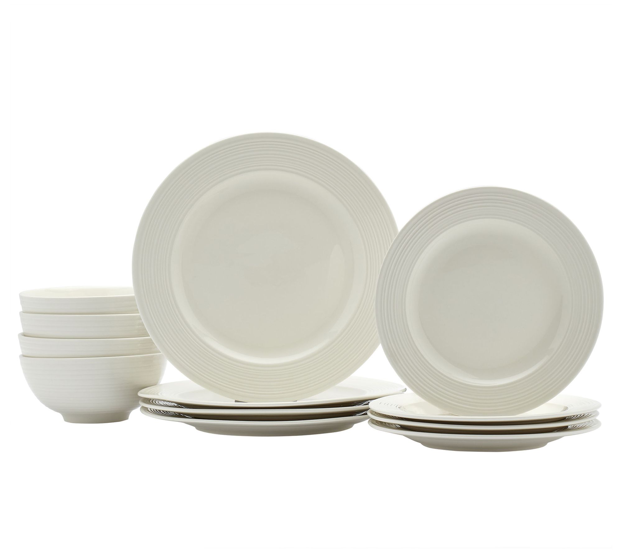 • Includes four 10.5" dinner plates, four 8" salad plates, and four 6" bowls