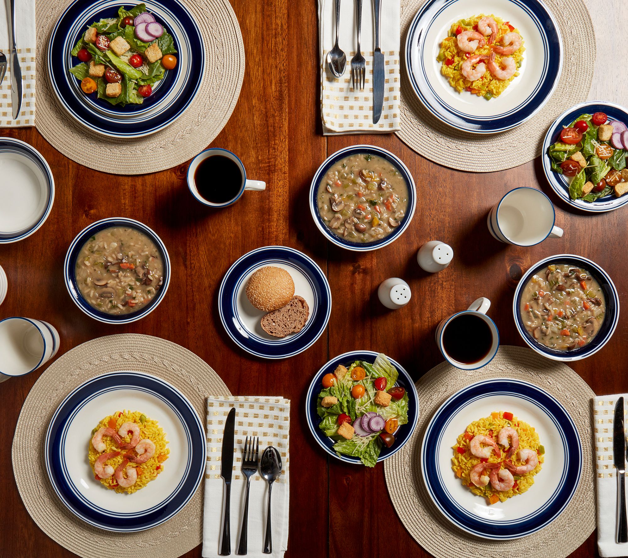 • Includes four dinner plates, four salad plates, four 18-oz bowls, and four 10-oz mugs