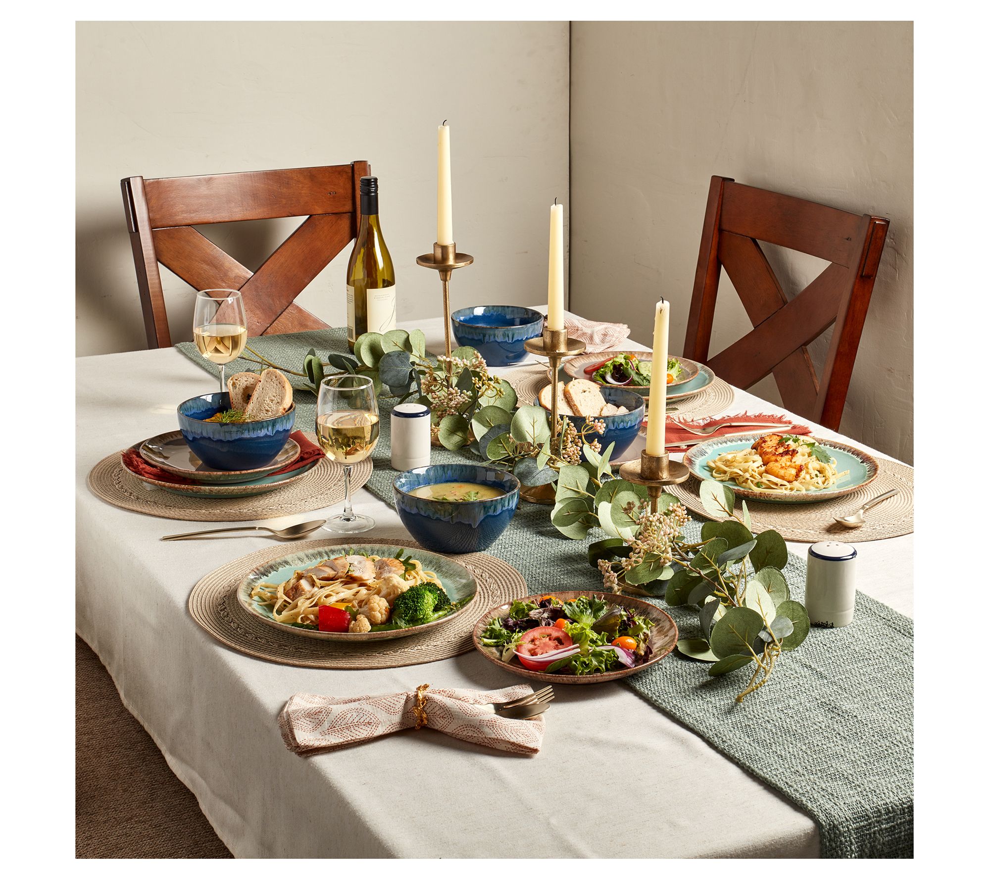 Add earthy charm and rustic flair to your table setting with this set of Tucson dinnerware, showcasing captivating reactive glaze color patterns and an intriguing style. From Tabletops Gallery.