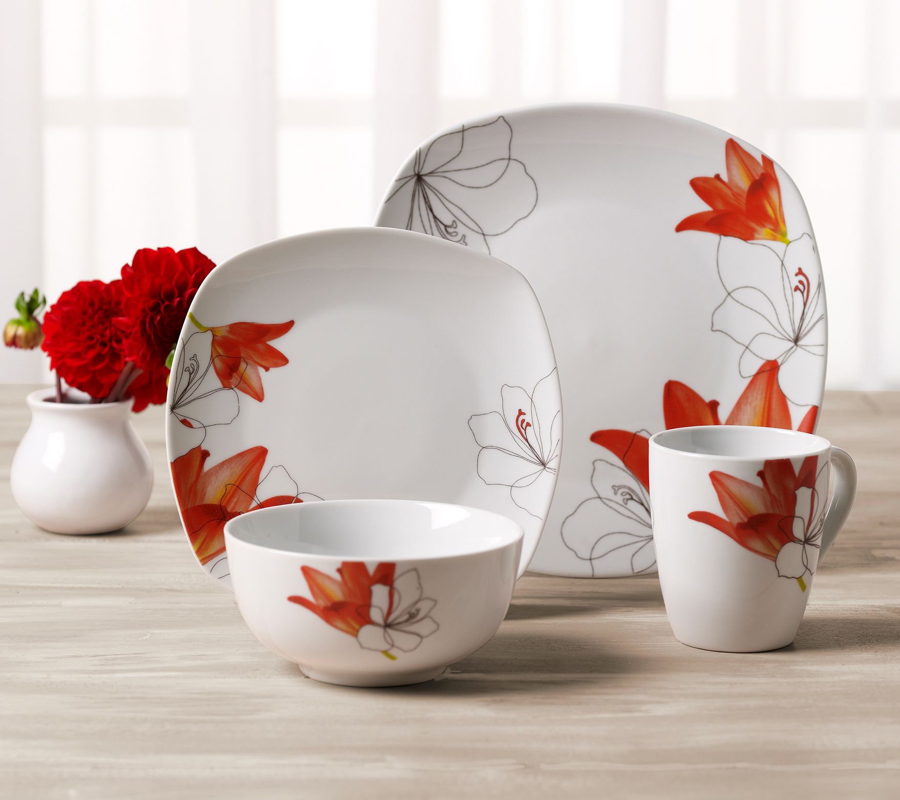 Bring graceful style and timeless elegance to your kitchen table with this artfully designed 16-piece Lily dinnerware set. From TTU Gallery.