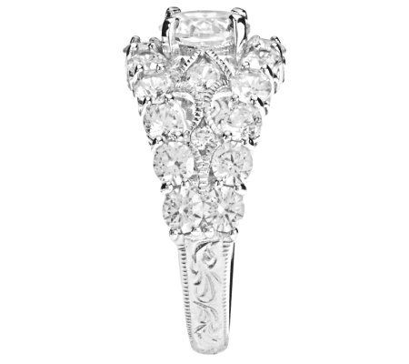 • Prong-set, round, bloom-cut Diamonique simulated diamond surrounded by prong-set, round Diamonique simulated diamonds; open shoulder accented with round Diamonique simulated diamonds; milgrain details with textured back