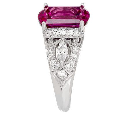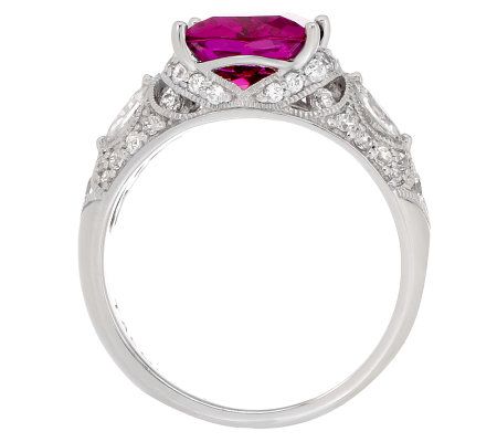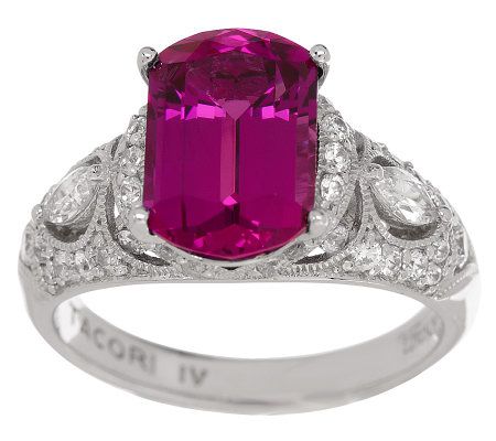 Technically, you may not be a princess. But with this glorious ring on your finger, you can throw all technicalities out the window! Its crescent emerald-cut lab-created rubellite creates a jaw-dropping centerpiece, while round and marquise-shaped Diamonique(R) simulated diamonds are set along the shoulders in an intricate design. Get ready to be the belle of the ball. From Tacori IV--Diamonique Jewelry.