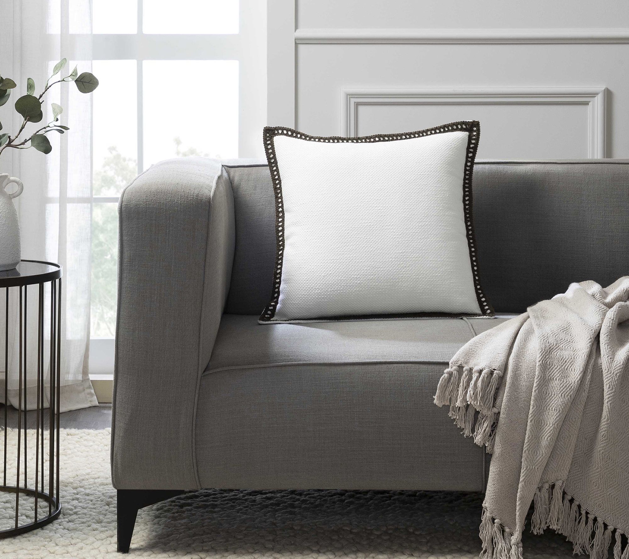 Tahari Home Crochet Edge Decorative Pillow, 20"x 20"