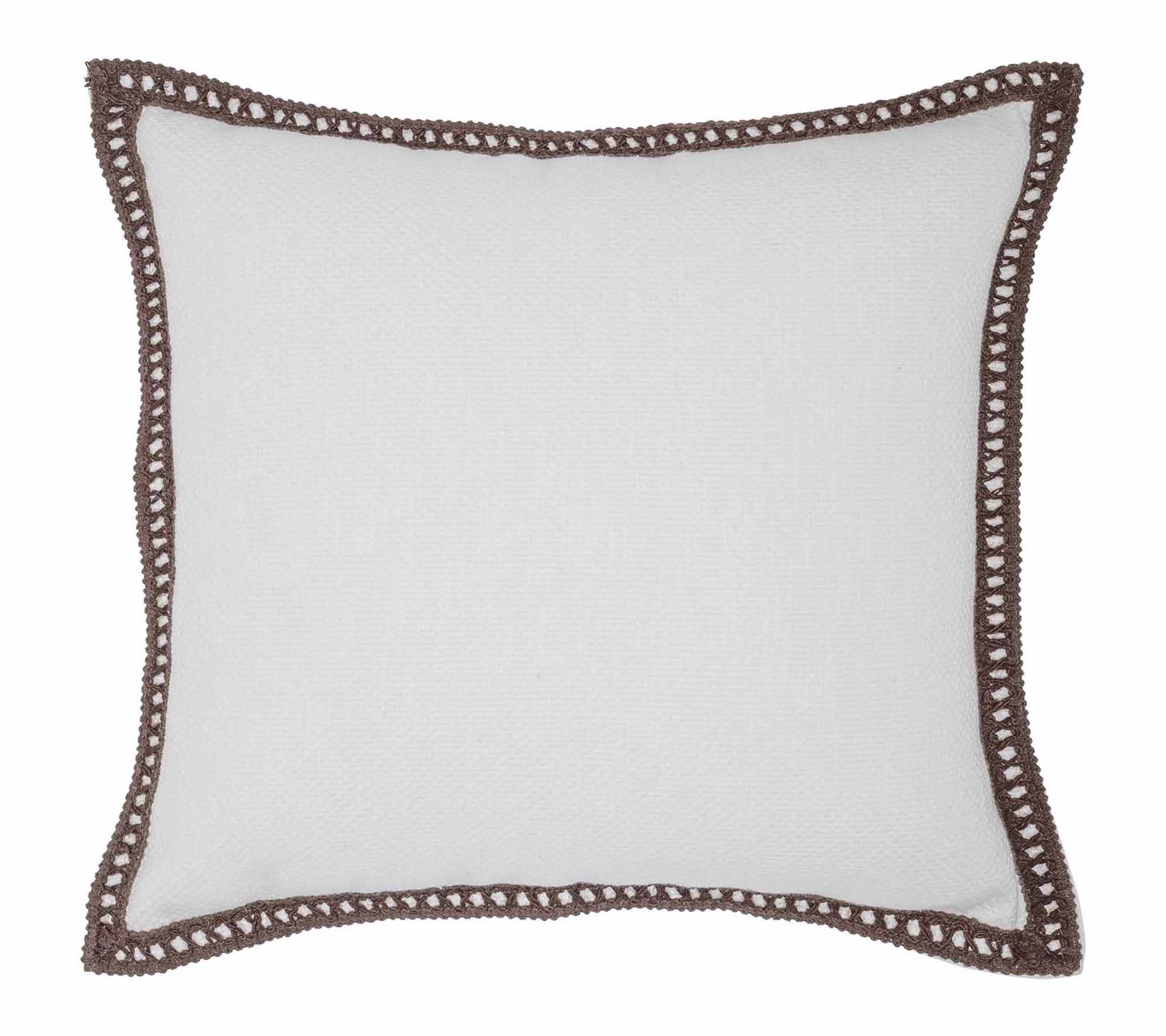 Bring a layer of charm and texture to your bed or favorite chair with this decorative pillow, featuring a woven cotton cover and crochet-stitched edges that add a cozy finishing touch. Enjoy its textured look whether you're curling up with a book, layering it with your current decor, or giving a guest room an inviting upgrade. From Tahari Home.