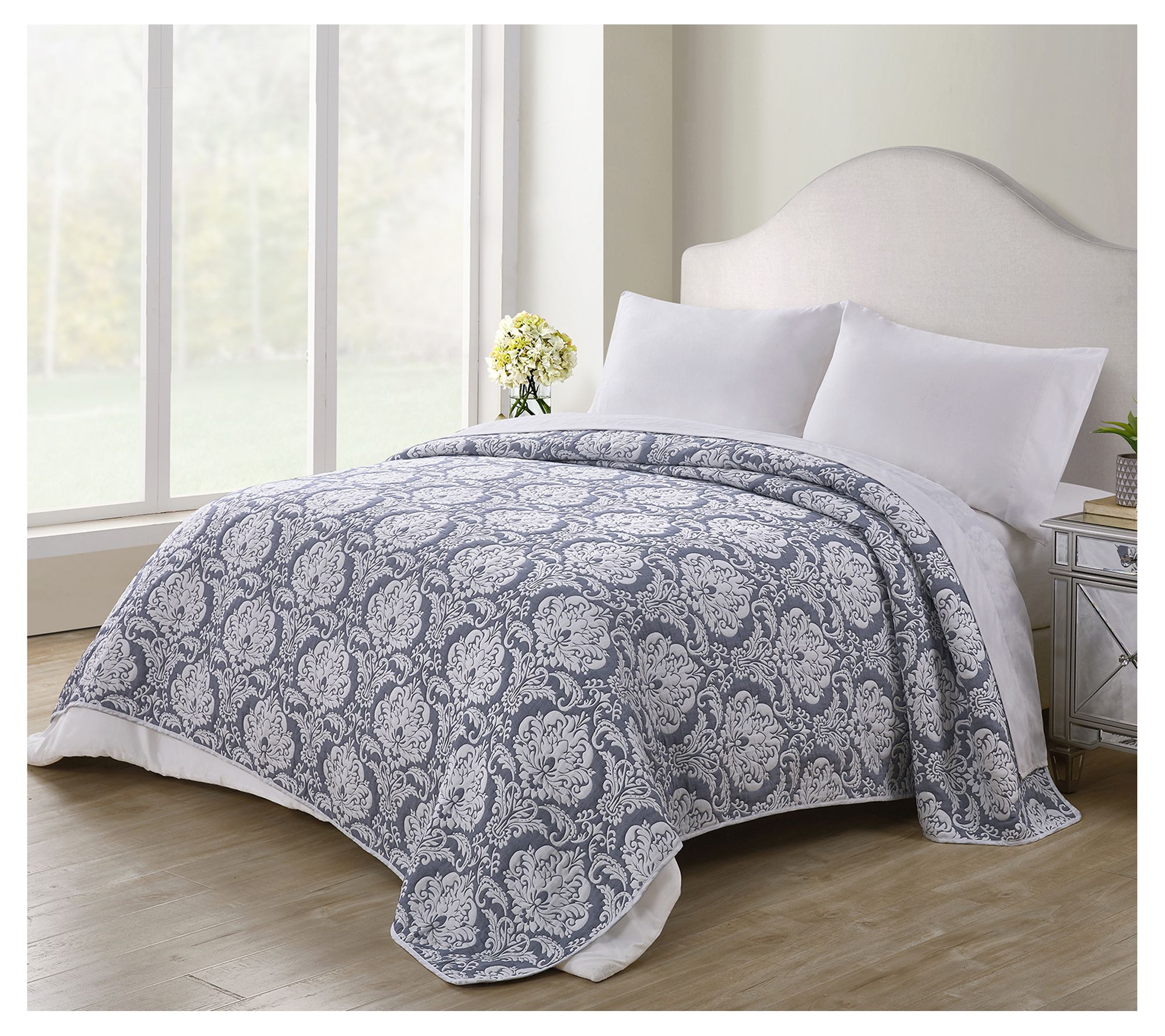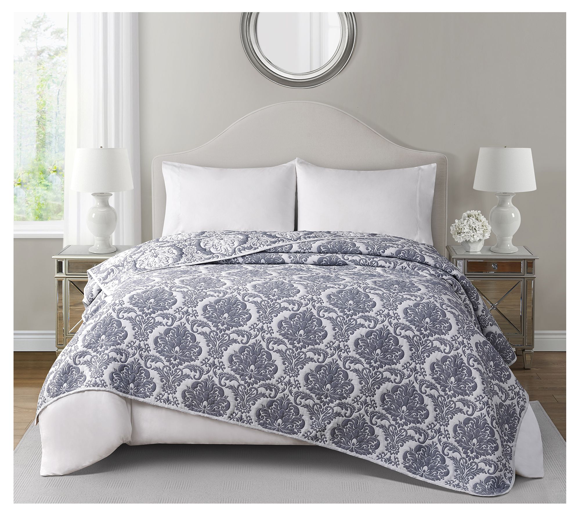 Tahari Home Hannah Damask Reversible Coverlet,Queen