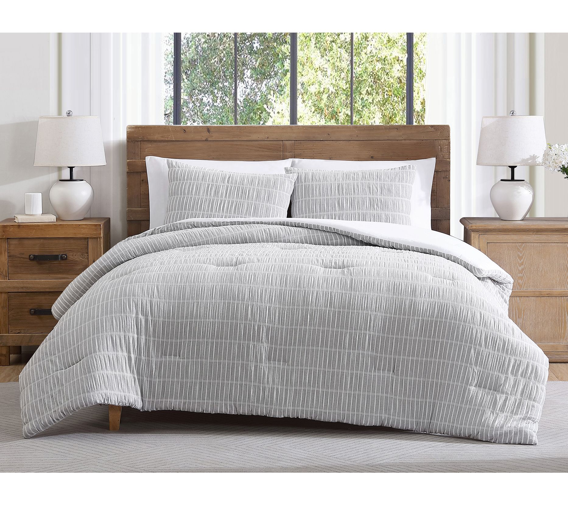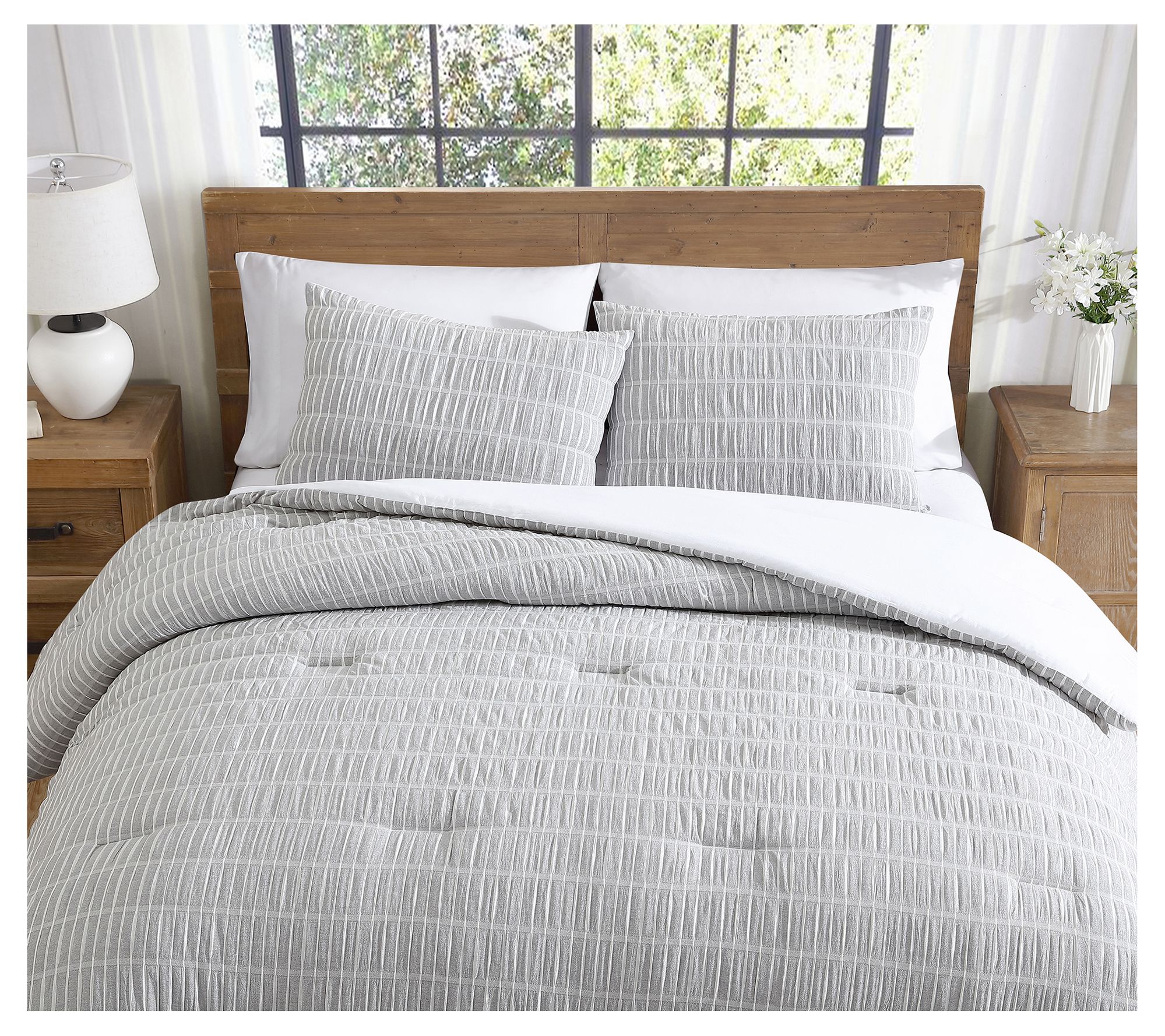 Create a serene escape in your bedroom with the luxurious Tahari Home Ivy Cotton Comforter Set. Designed with a calming seersucker texture and elegant puckered stripe patterns, this lightweight set is perfect for those warm spring and summer nights. Machine washable for easy care, it adds effortless style and comfort to your space. From Tahari Home.