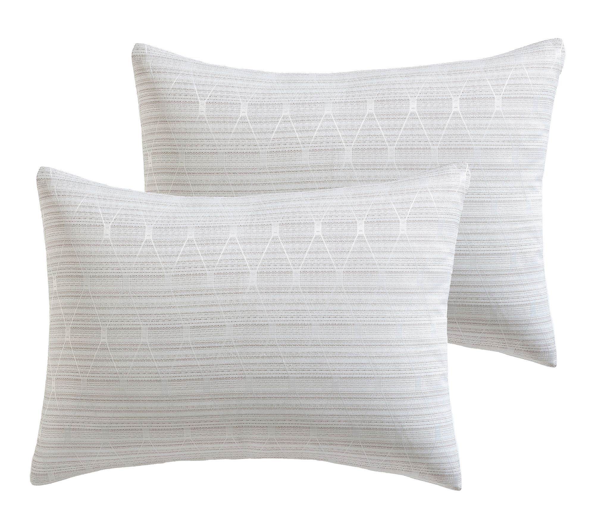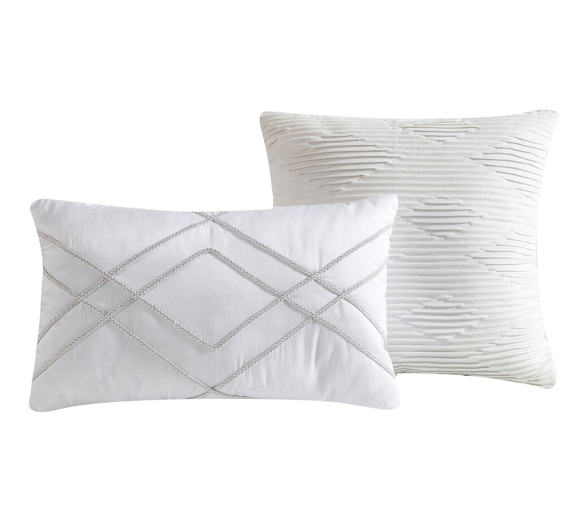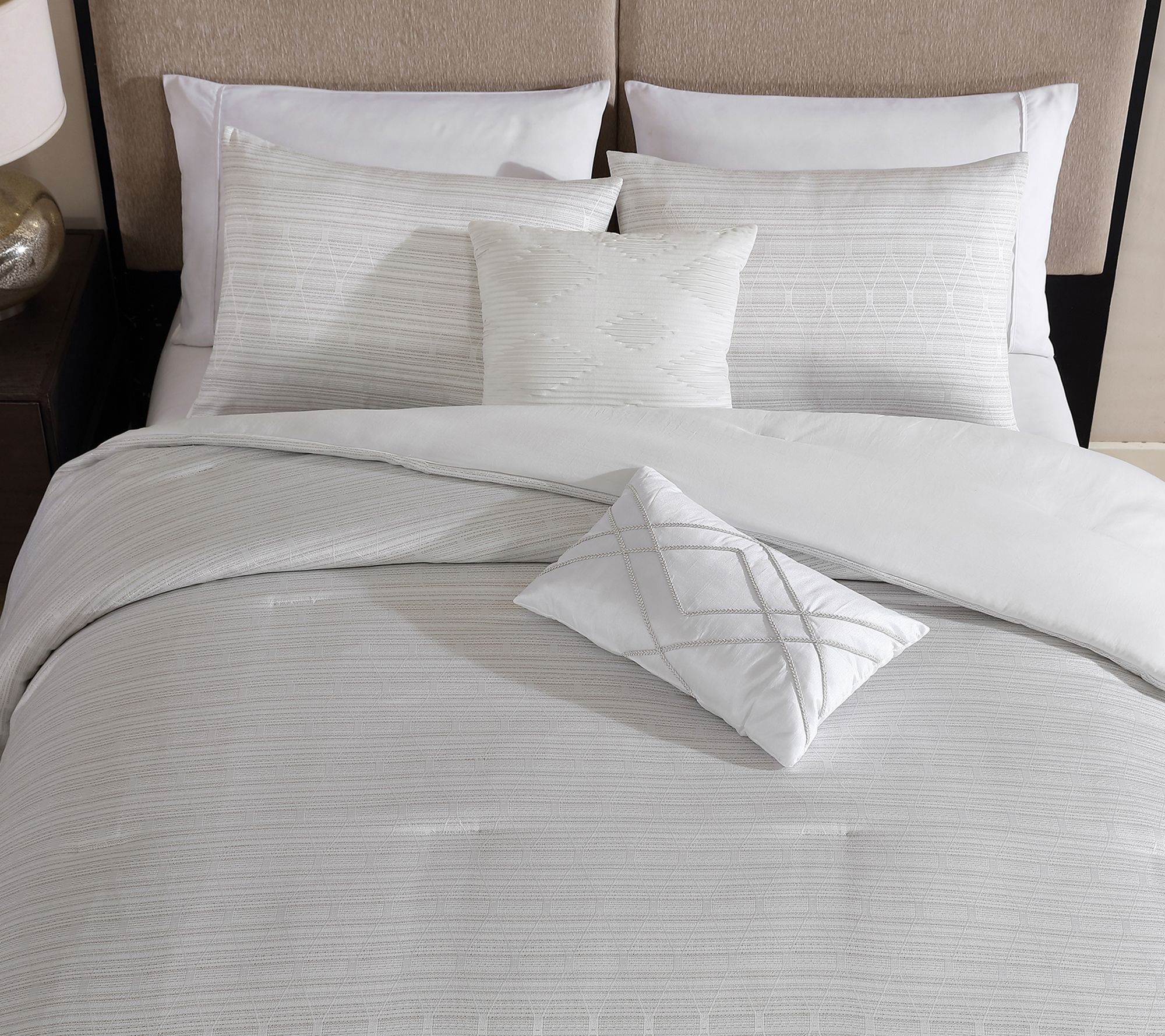Transform your bedroom into a calming retreat with this five-piece comforter set, featuring a woven jacquard pattern in modern grey diamond motifs. Soft to the touch and designed for all-season comfort, this bedding offers style and durability that stand up beautifully to everyday use. From Tahari Home.