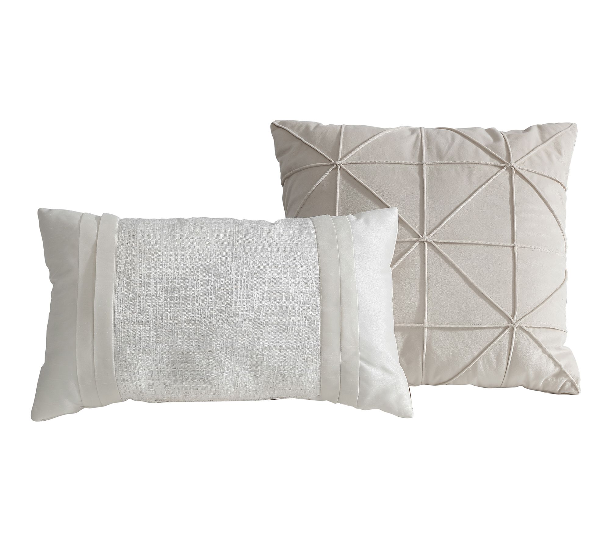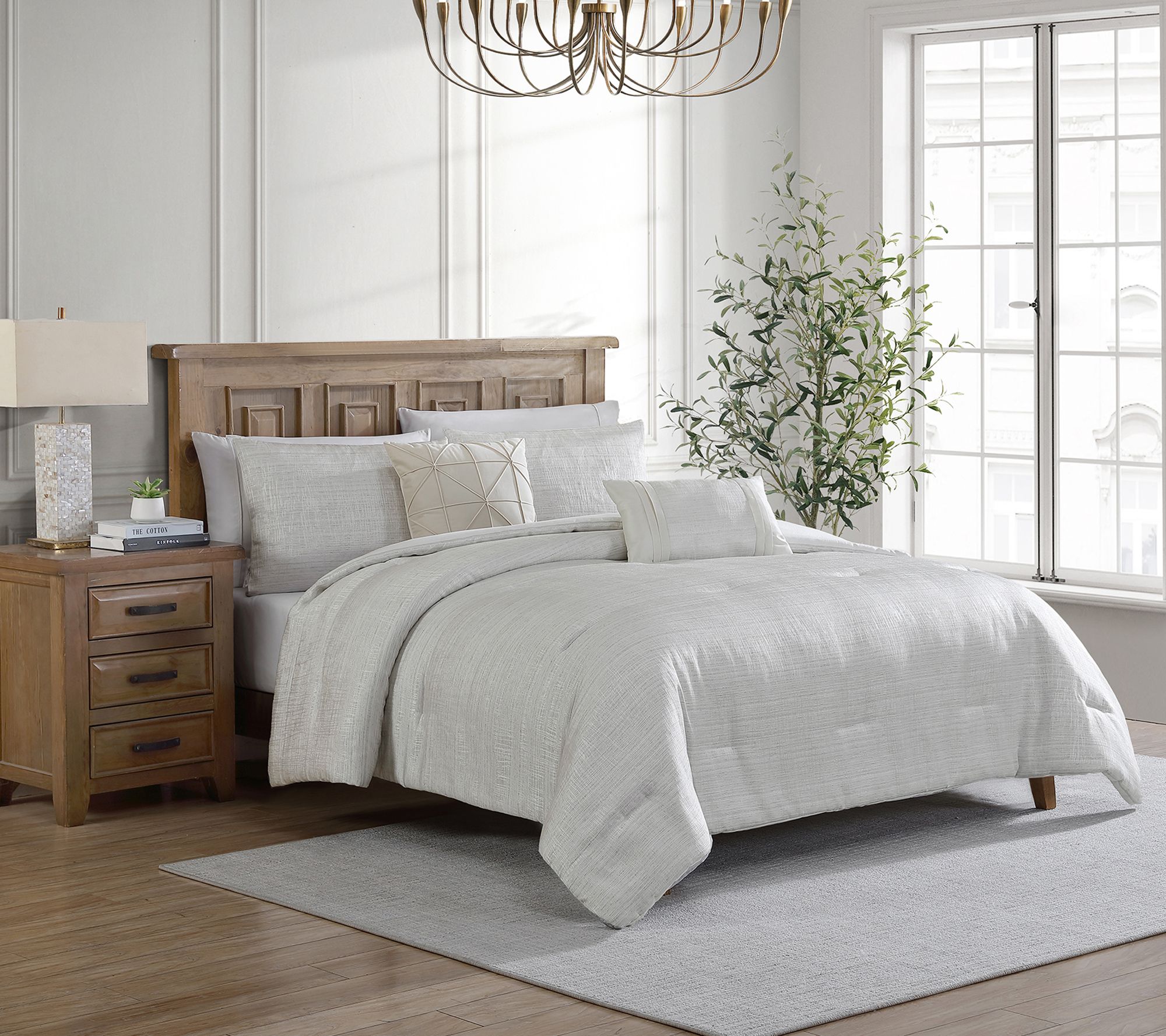 • Includes one comforter, two shams, and two throw pillows
