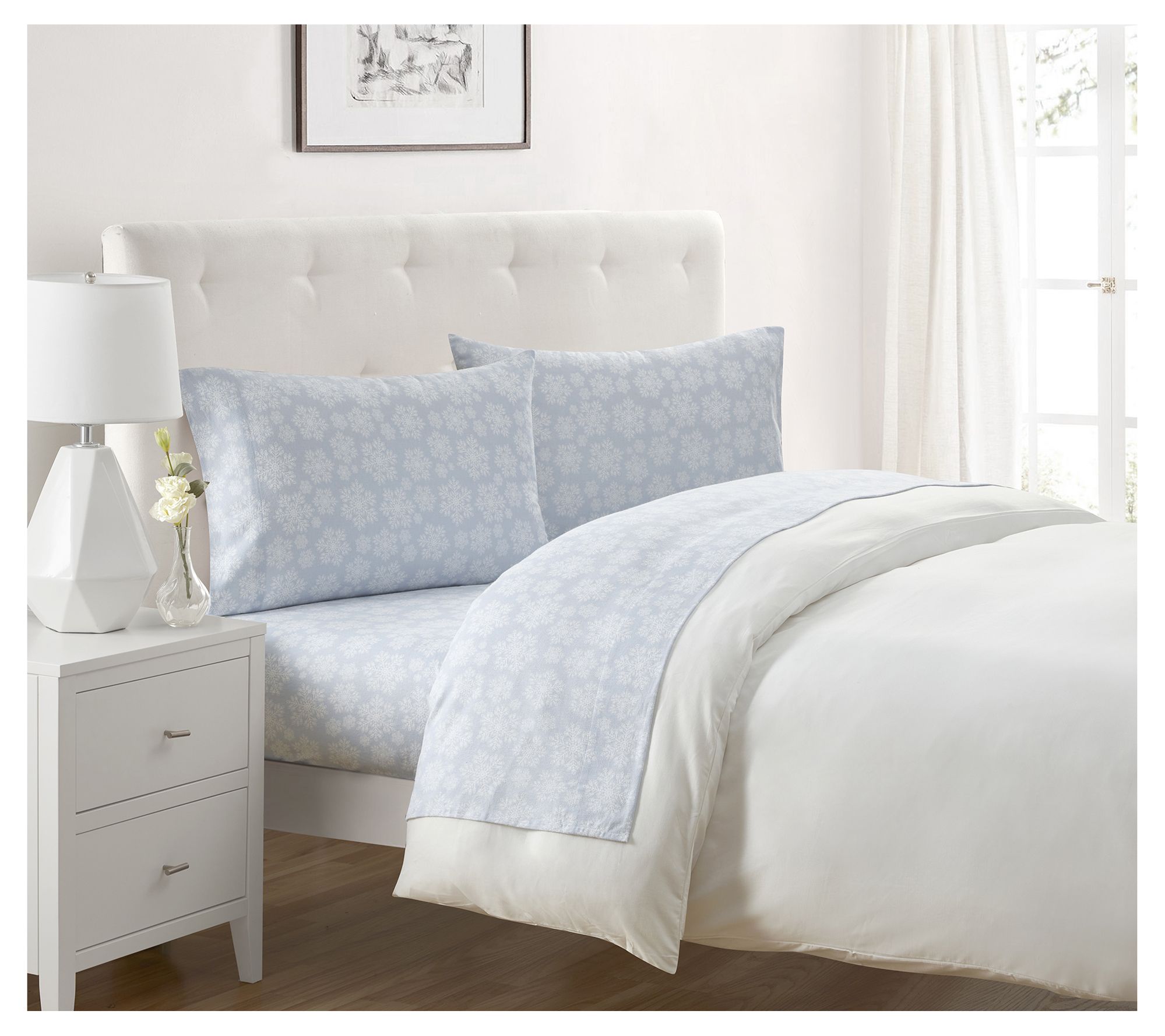 Transform your bedroom into a cozy winter wonderland with this Tahari Home Snowflake triple-brushed cotton sheet set. This festive bedding brings warmth and charm to your space with its classic snowflake print and soft, brushed flannel texture. Enjoy the ultimate in comfort and style -- perfect for chilly nights. From Tahari Home.