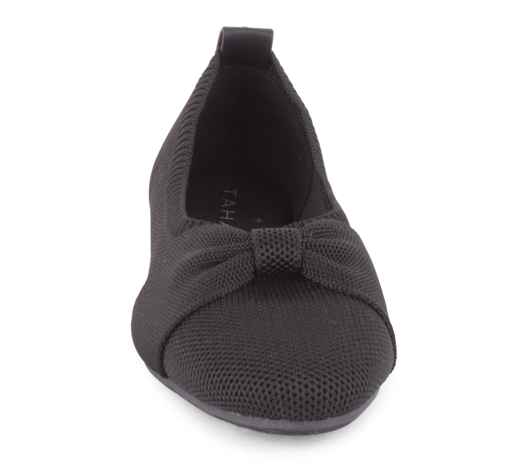 • Slip-on design, ballet flat style, knit upper, bow detail, rounded toe