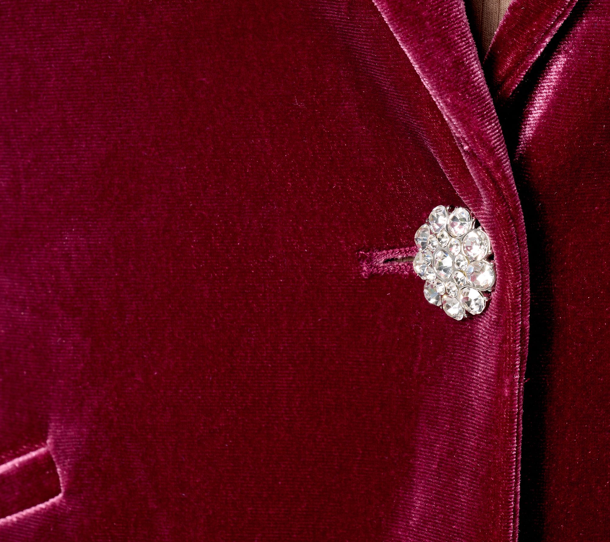 • Features: collar and peak notch lapel with one button, set-in long sleeves, front and back princess panels, front welt pocket