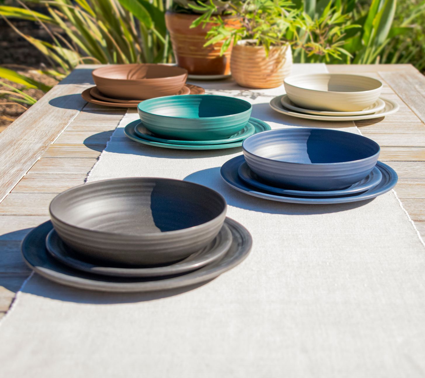 Earthy and bold, these Artisan salad plates are crafted from dishwasher-safe Planta material while delivering the look and charm of earthenware. From Abode Homewares.