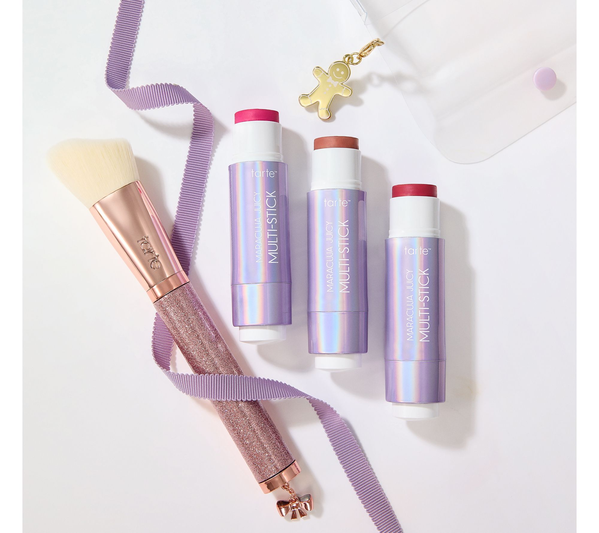 Get cheeky this holiday with the cheek souffle maracuja juicy multi-stick trio, a special-edition tarte set that gives you three full-size sticks for a sweet deal. It includes a range of holiday shades that are perfect for gifting -- or keeping!