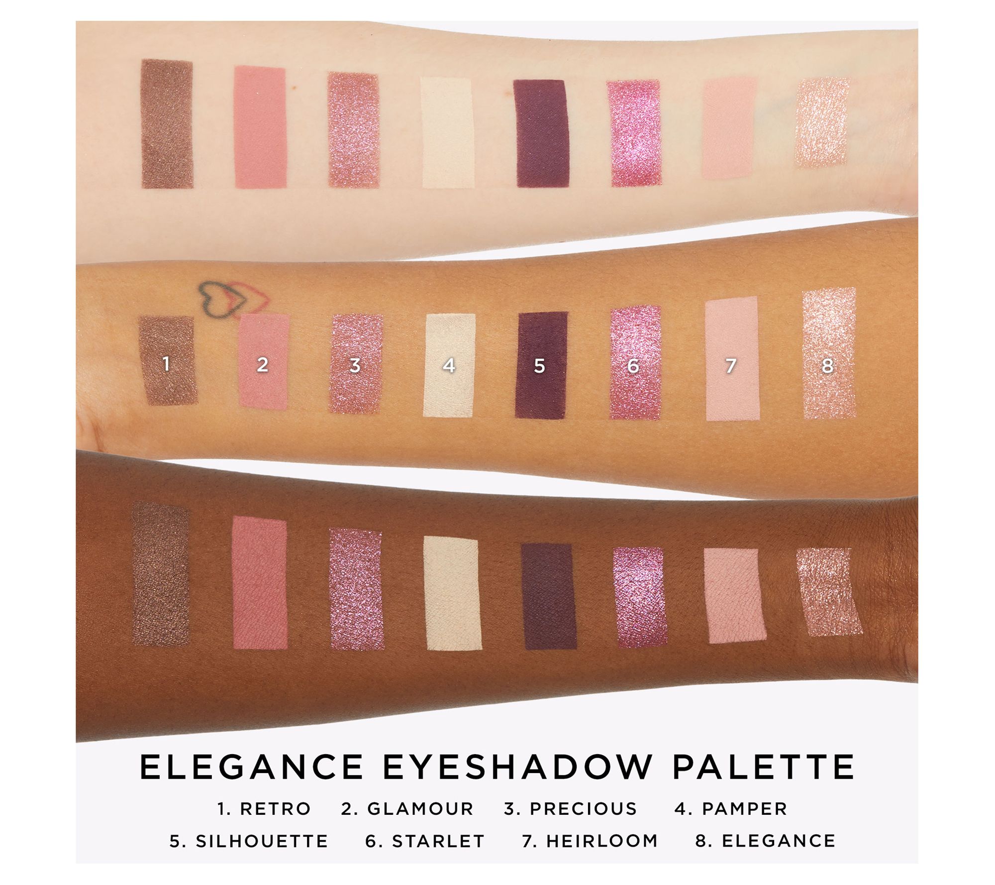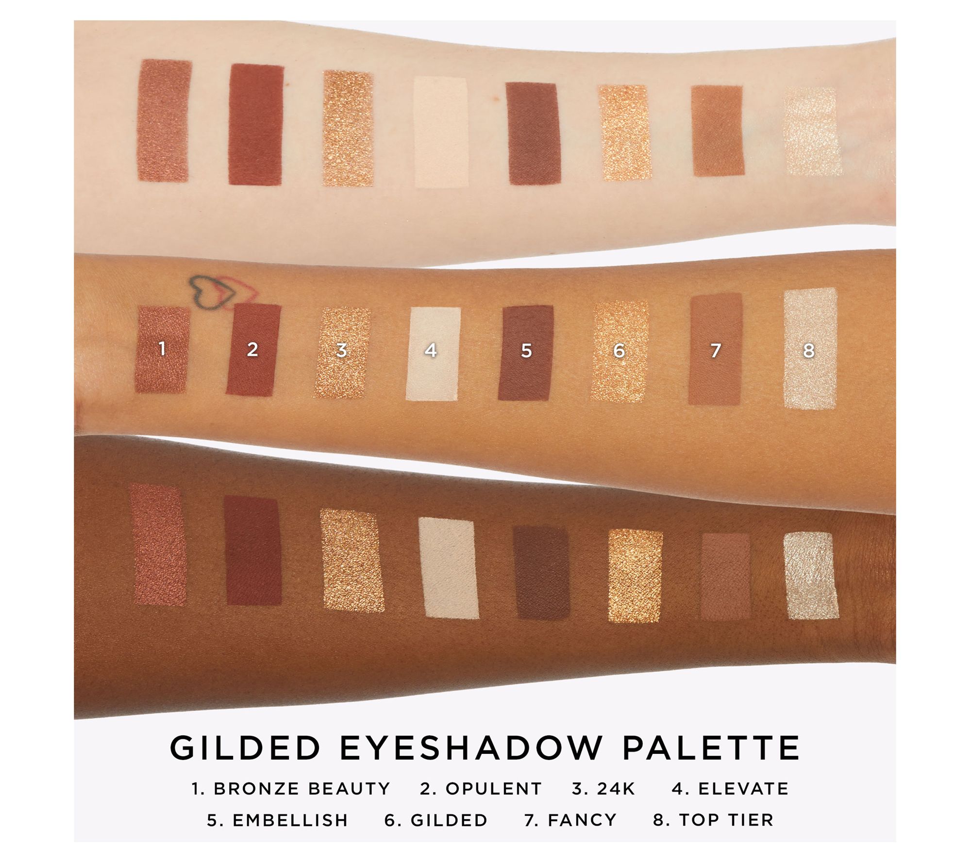 The Gilded palette includes shades to create luxurious eye looks. The Bejeweled palette is a mix of go-to essentials, and the Elegance palette is jam-full with date-night ready berries.