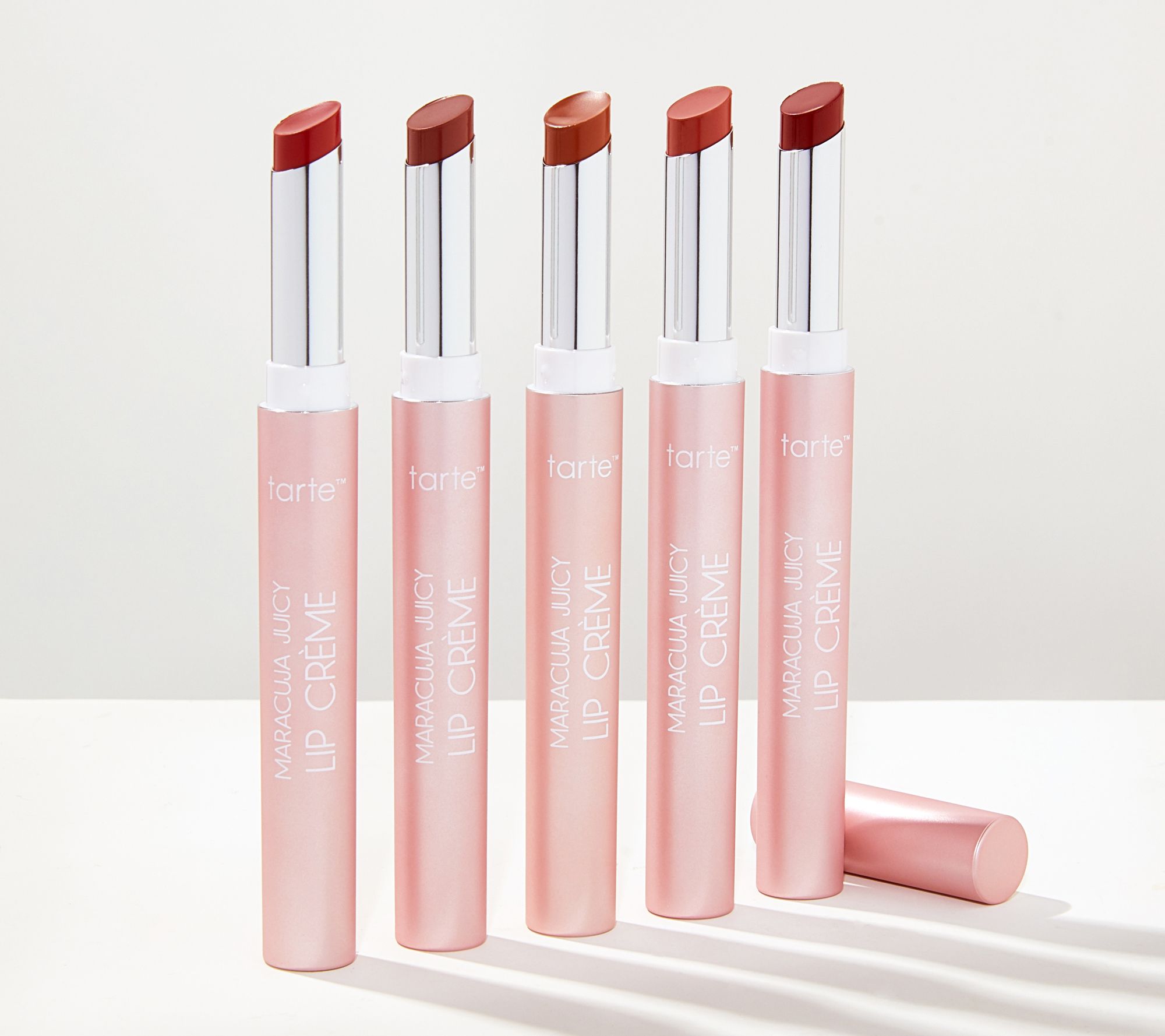 Get mistletoe-ready with this set of five tarte Maracuja Juicy Lip Cremes. The creamy, shiny balms deliver medium-coverage color and a satin gloss finish. The luxurious formula is infused with a maracuja oil for hydration that smooths the look of fine lip lines -- especially perfect for the dry winter months! Plus, the twist-up pen makes application quick and precise.
